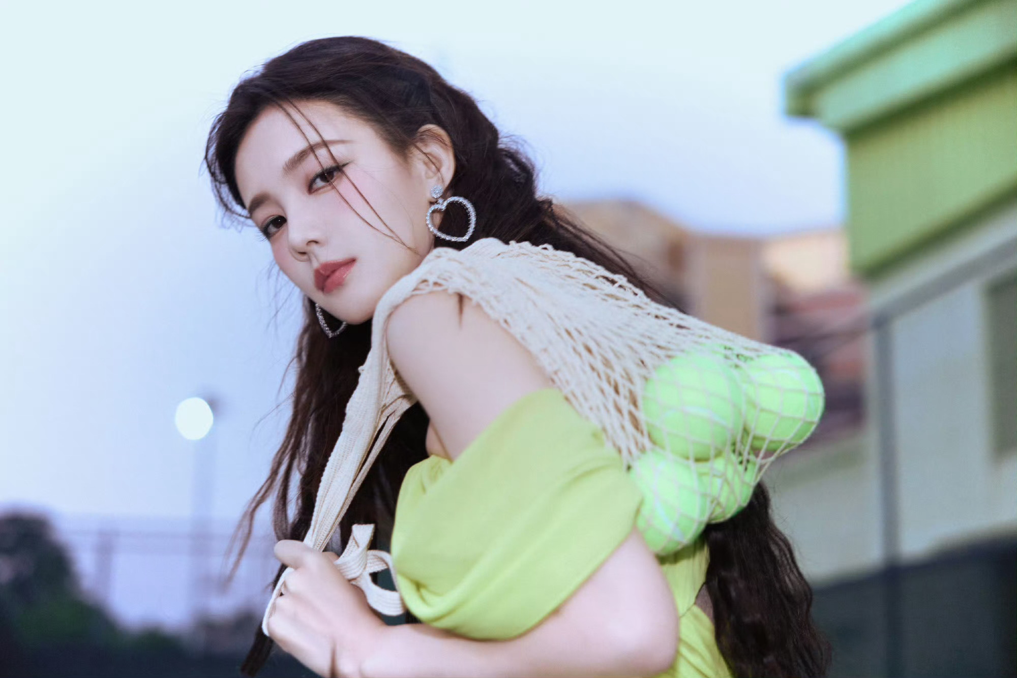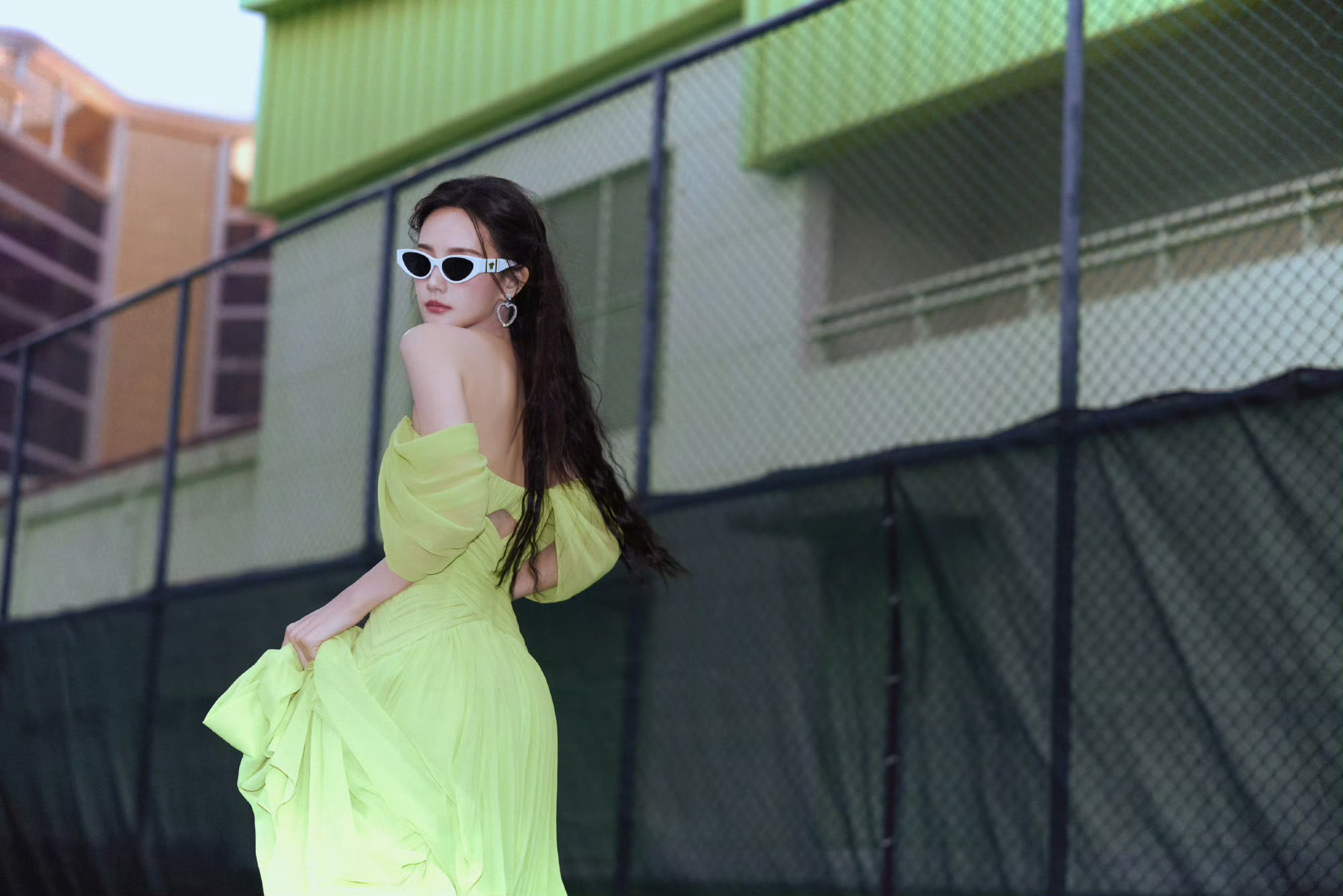 Angelababy薄荷绿小香 angelababy 车窗侧颜太美了