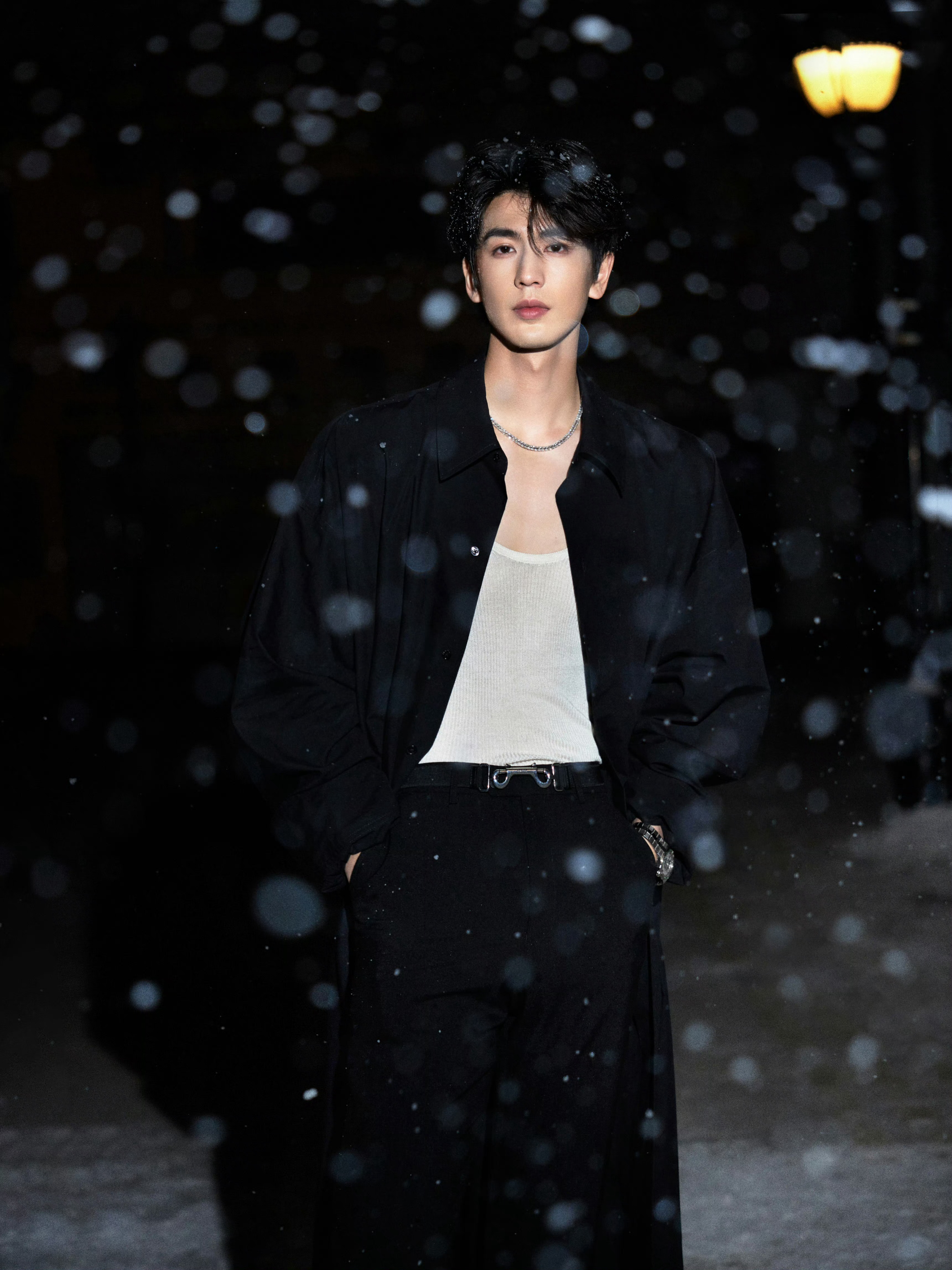 张凌赫身穿Gucci黑色大衣,佩戴Chopard High Jewelry高级珠宝与Alpine Eagle雪山傲翼腕表,出席今夜的爱奇艺尖叫之夜。