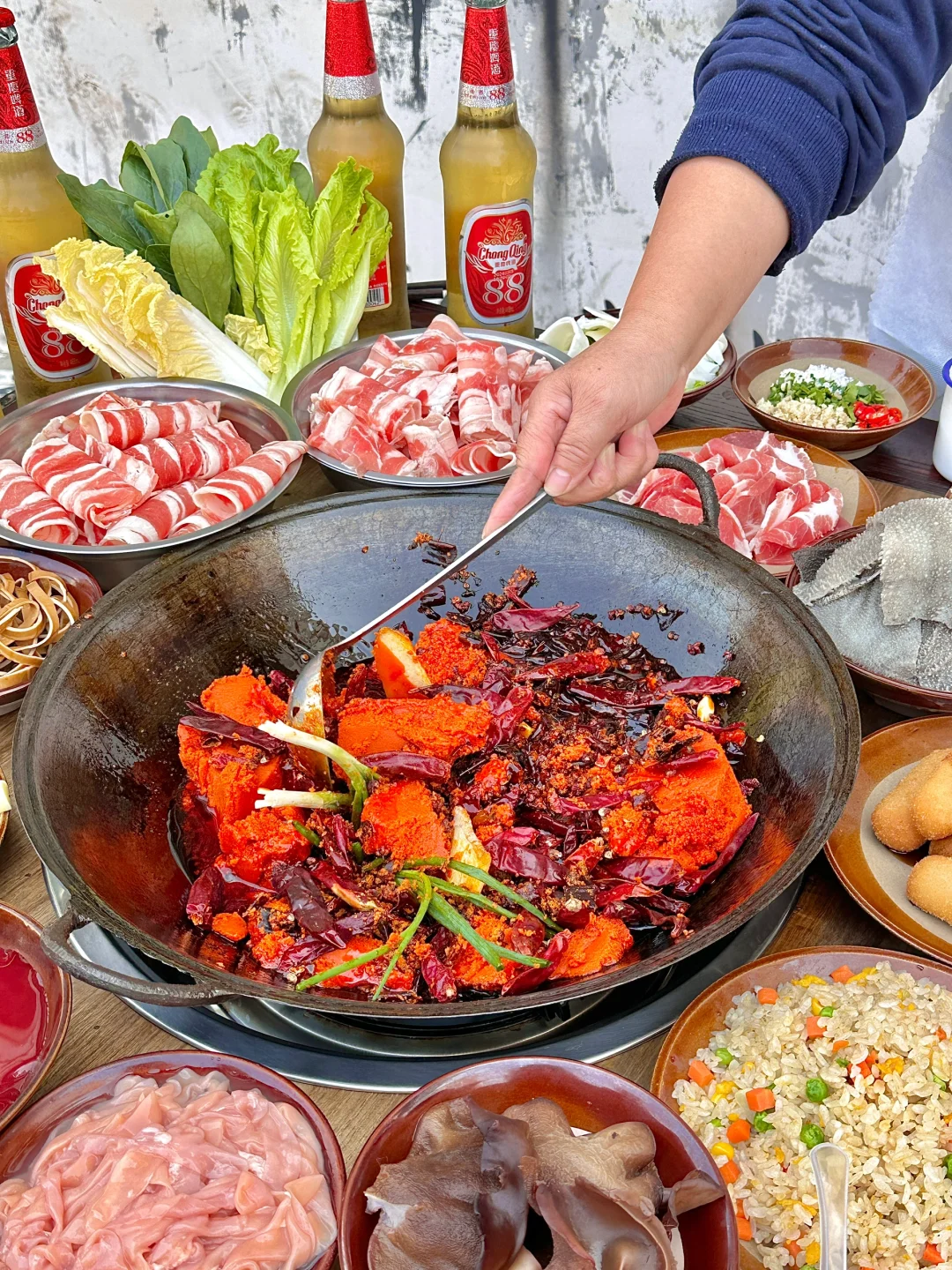 在重庆本地都打堆堆的老火锅!! 来武汉也不例外!十桌有七桌都是回头客! 地道的重庆味道,7⃣️斤的锅底现炒,看着咕咚咕咚冒着泡泡红油、辣椒的锅底,把人都要香晕~😋