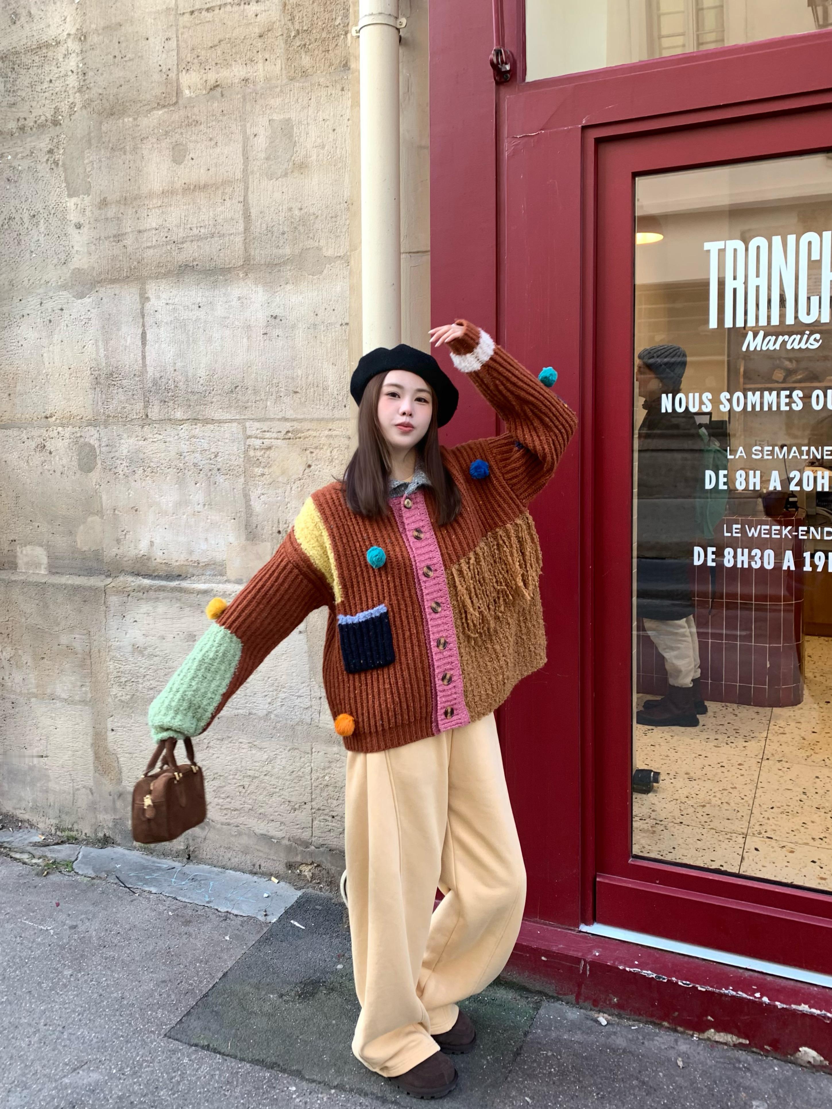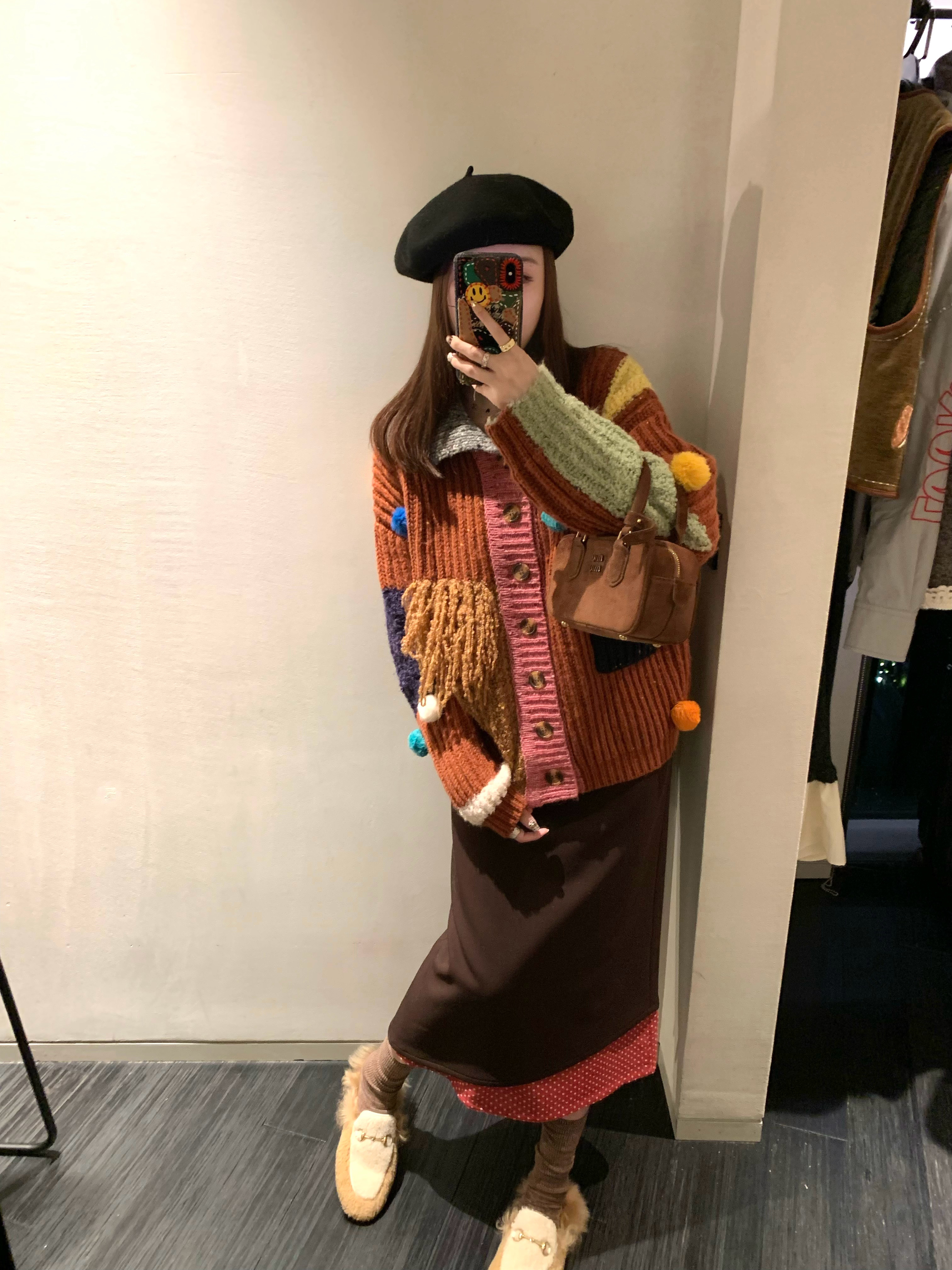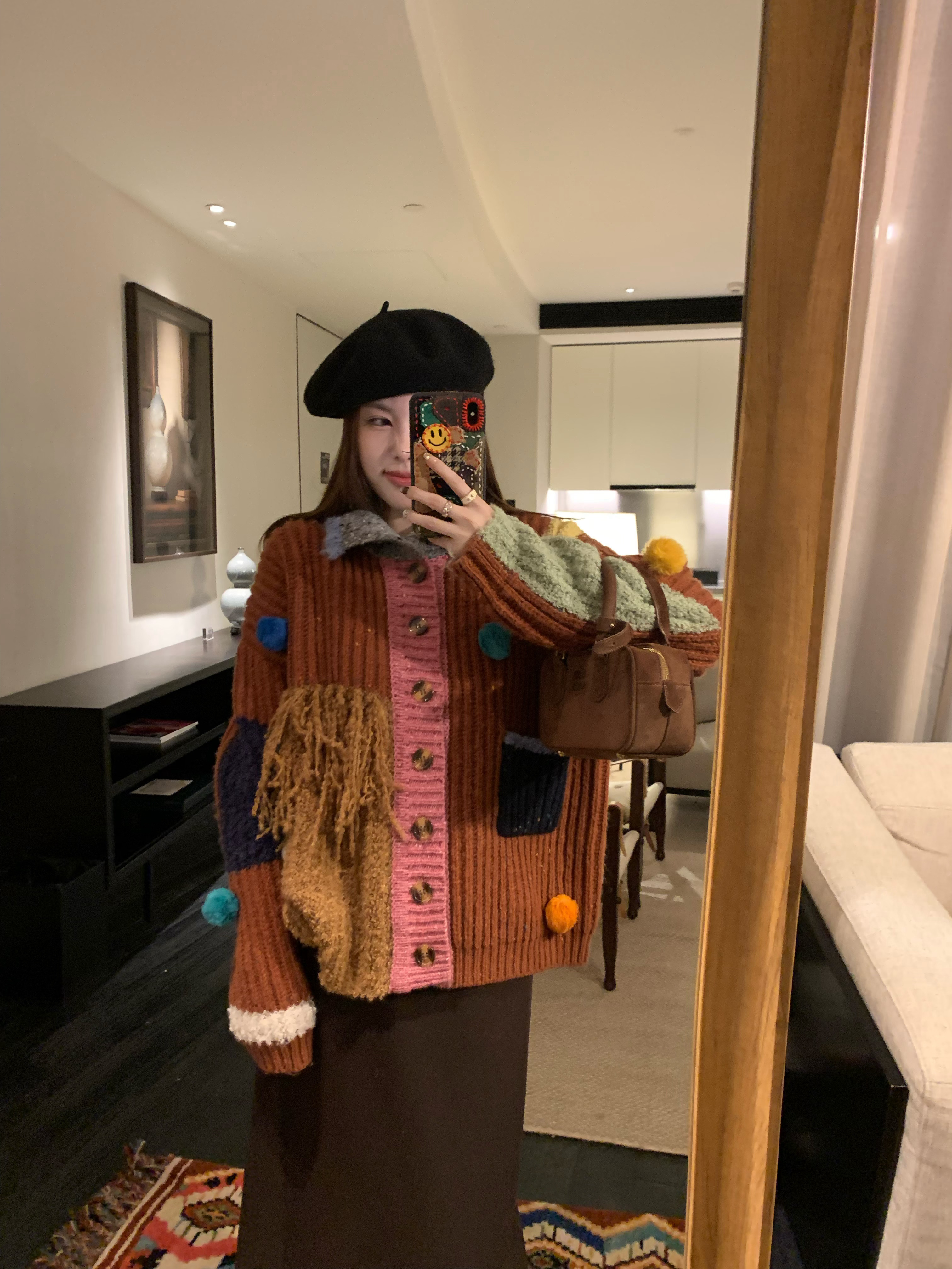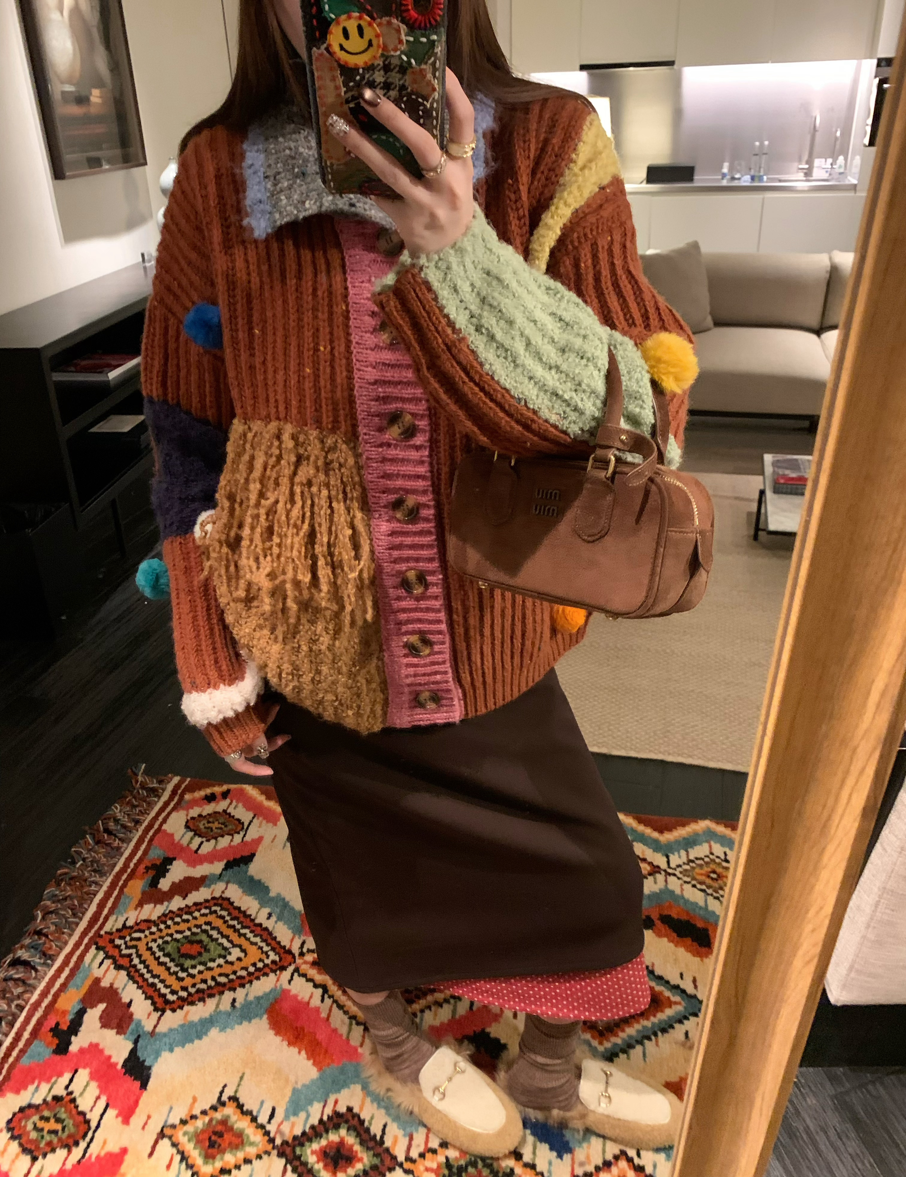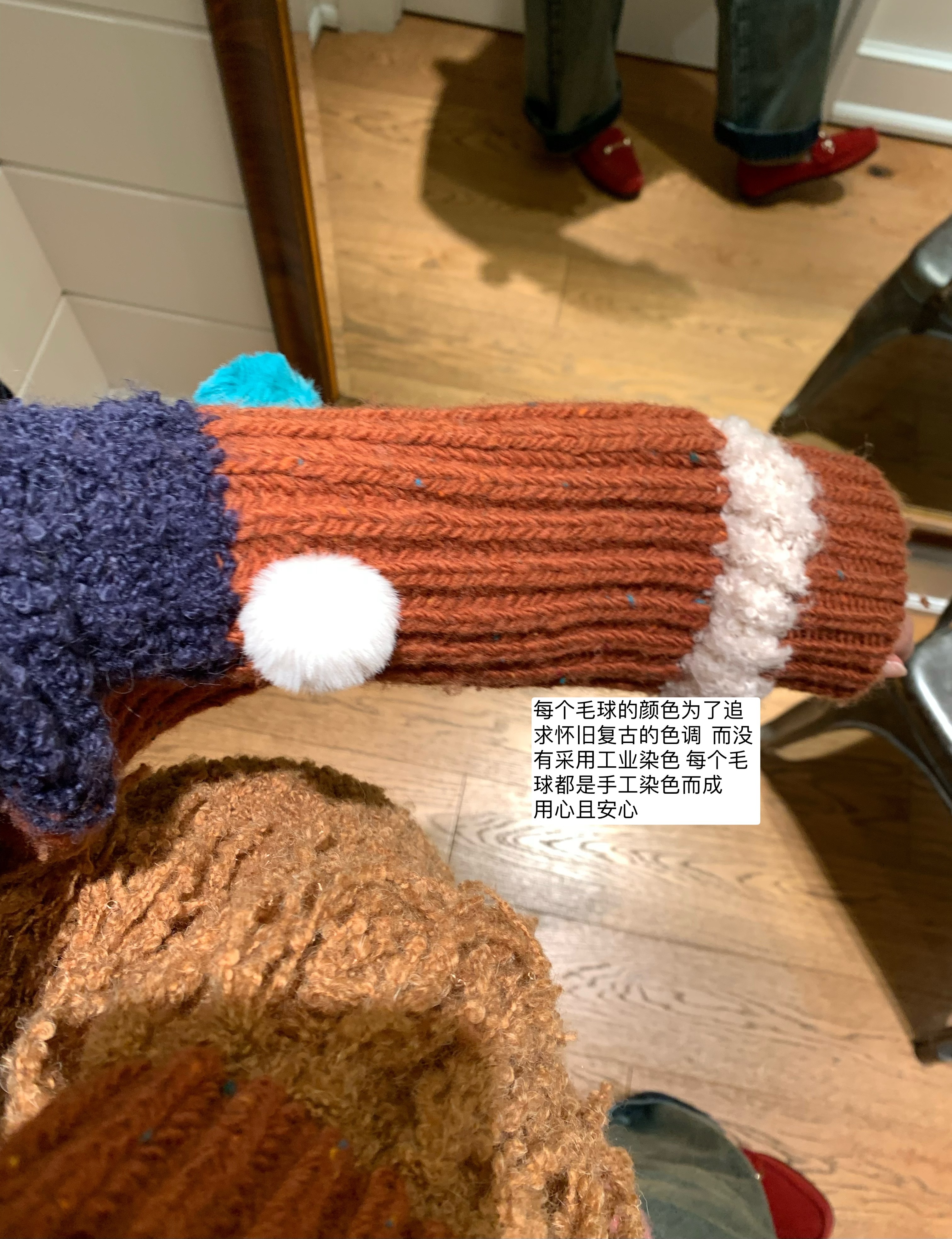 自带节日氛围的一件 精致细节看了就让人心情好 重磅系列整件是由【10种颜色拼接】其中四种纱线是100羊毛 六种纱线含有20羊驼毛