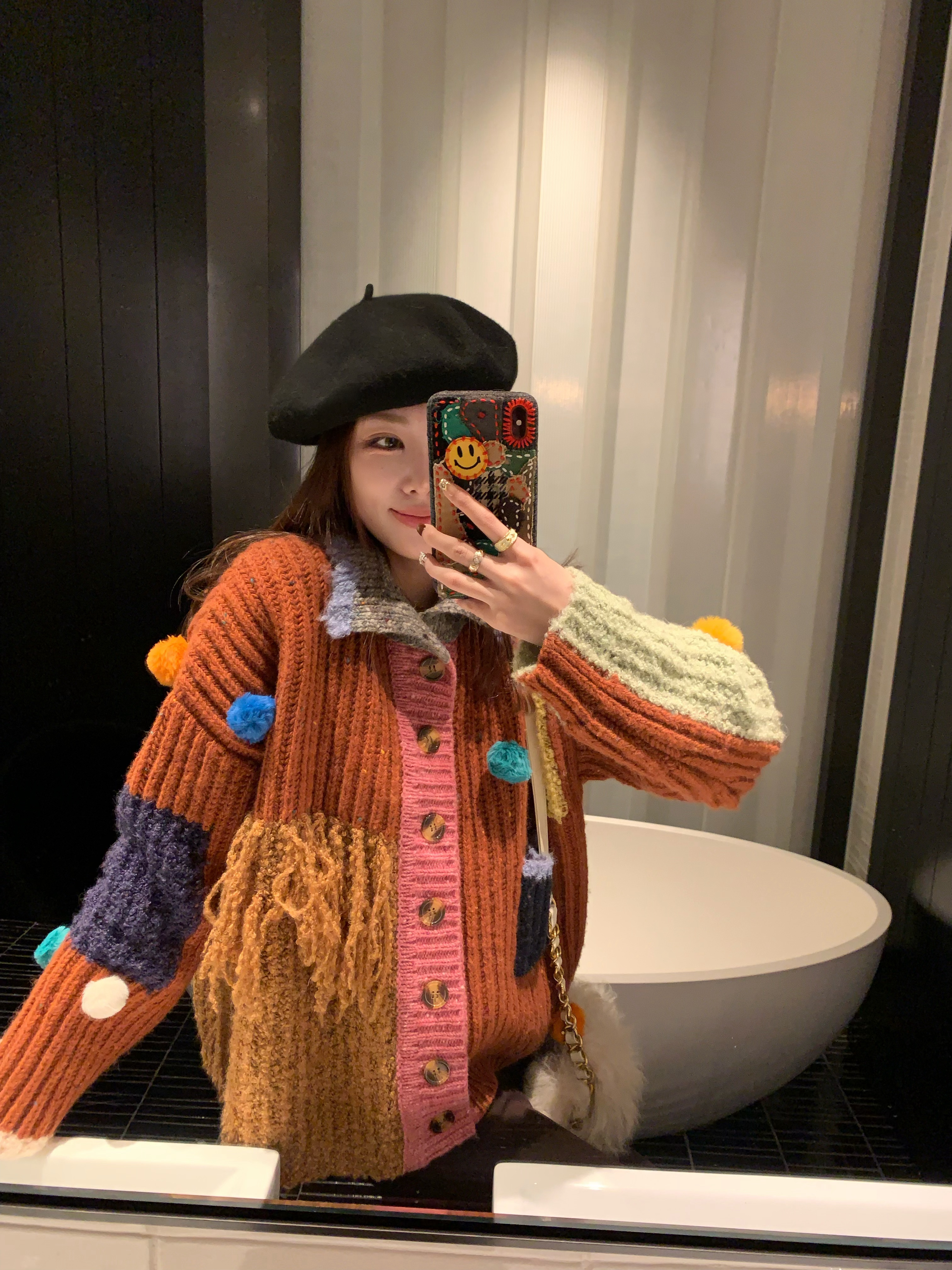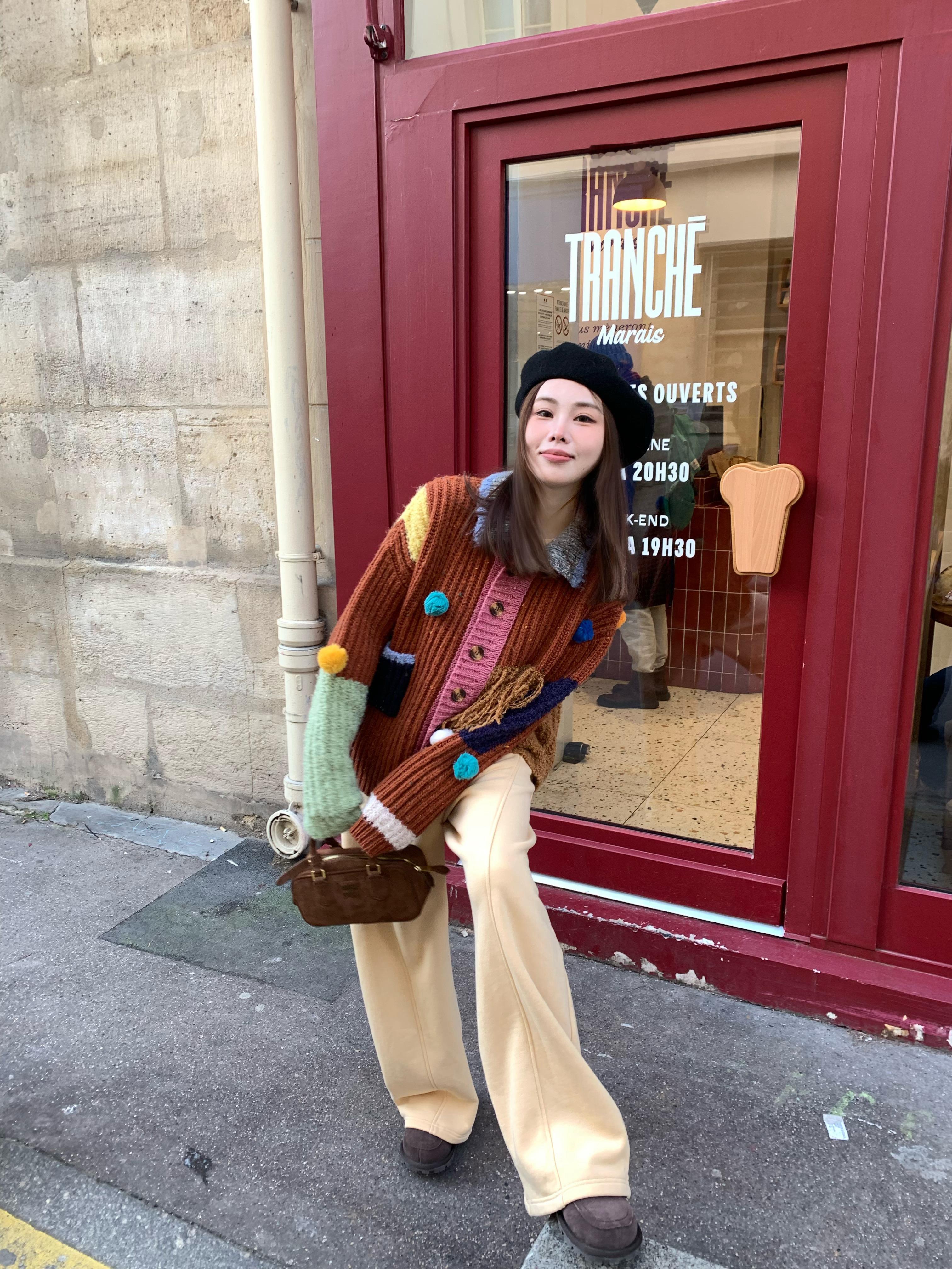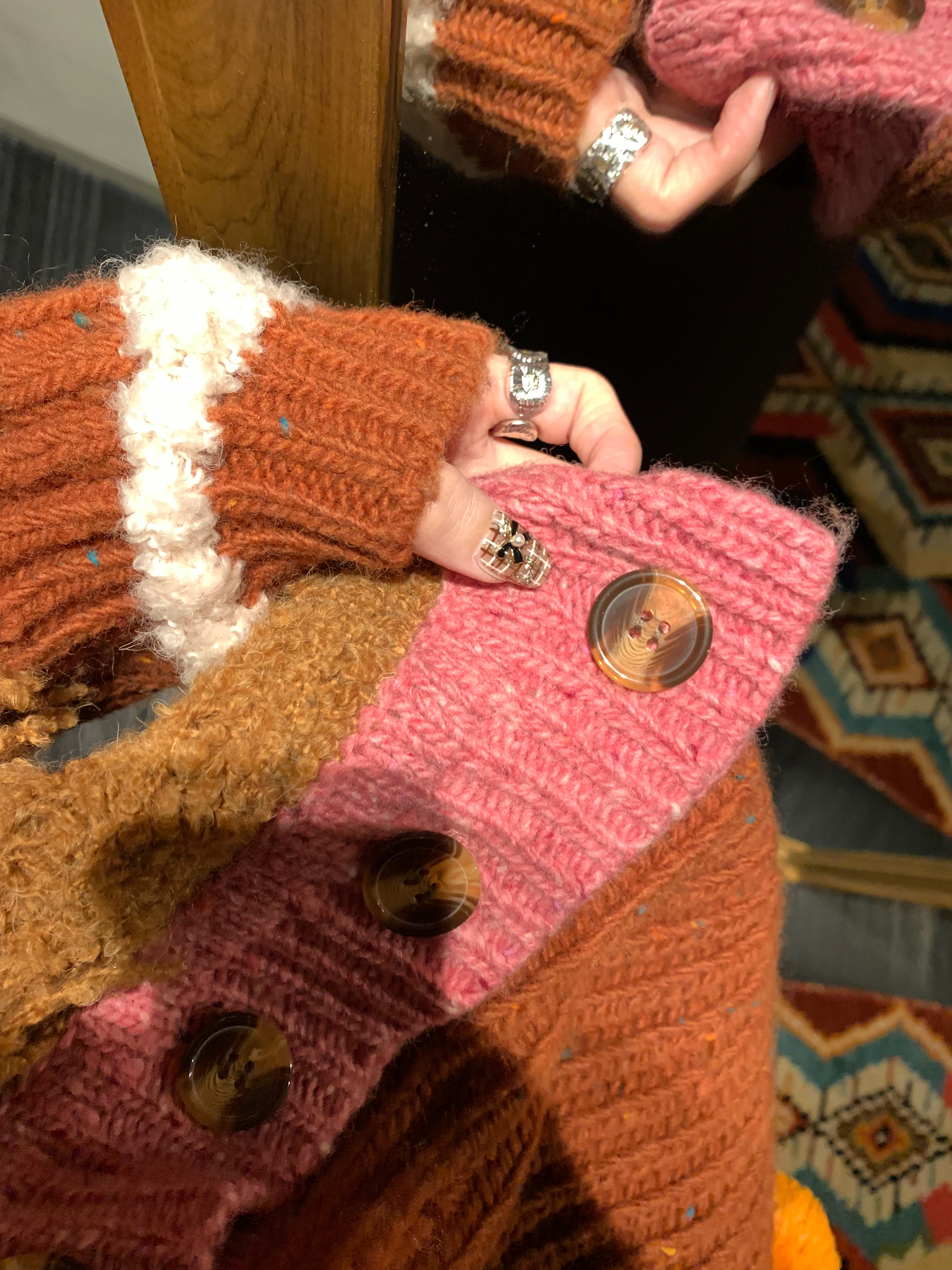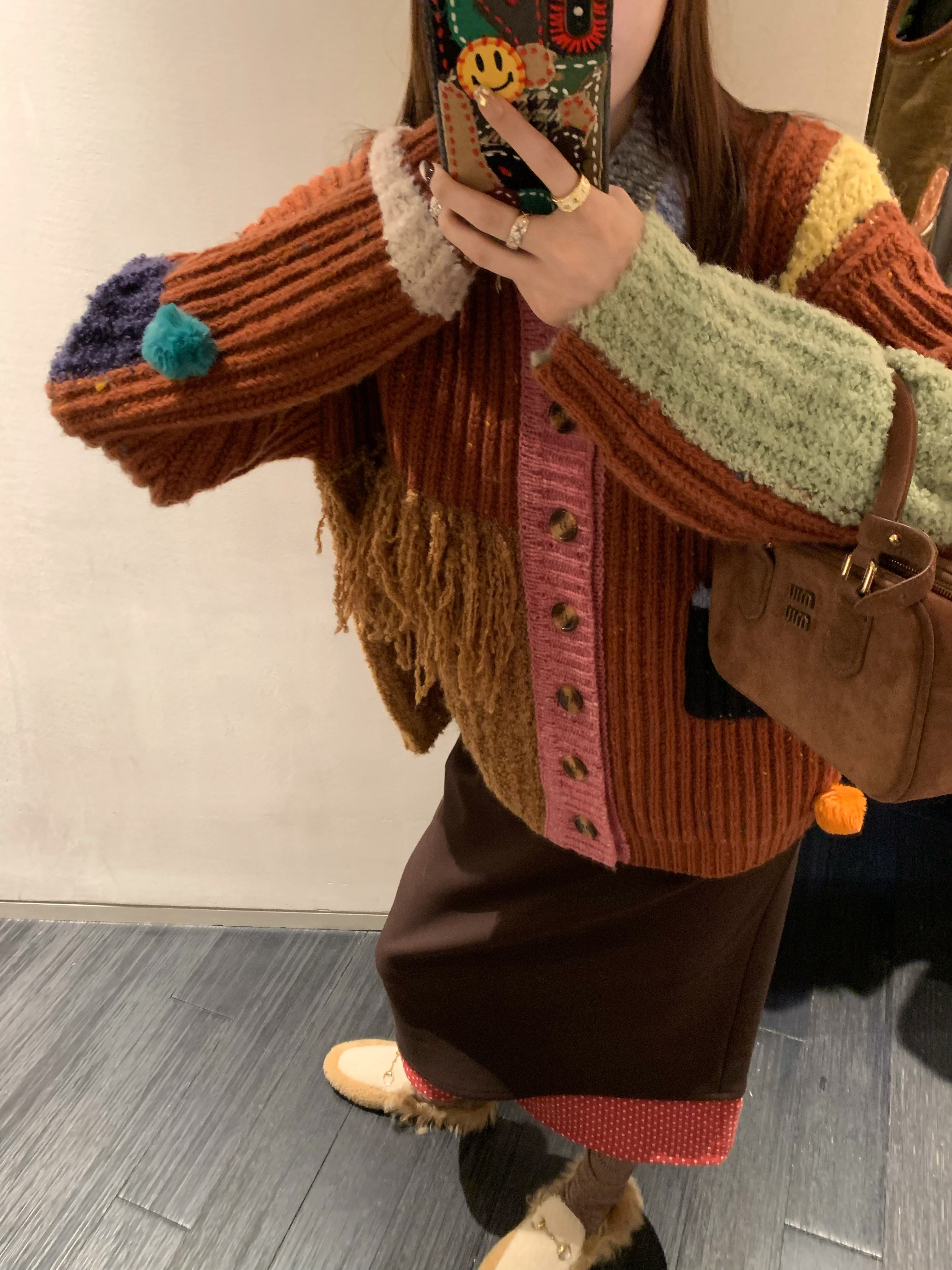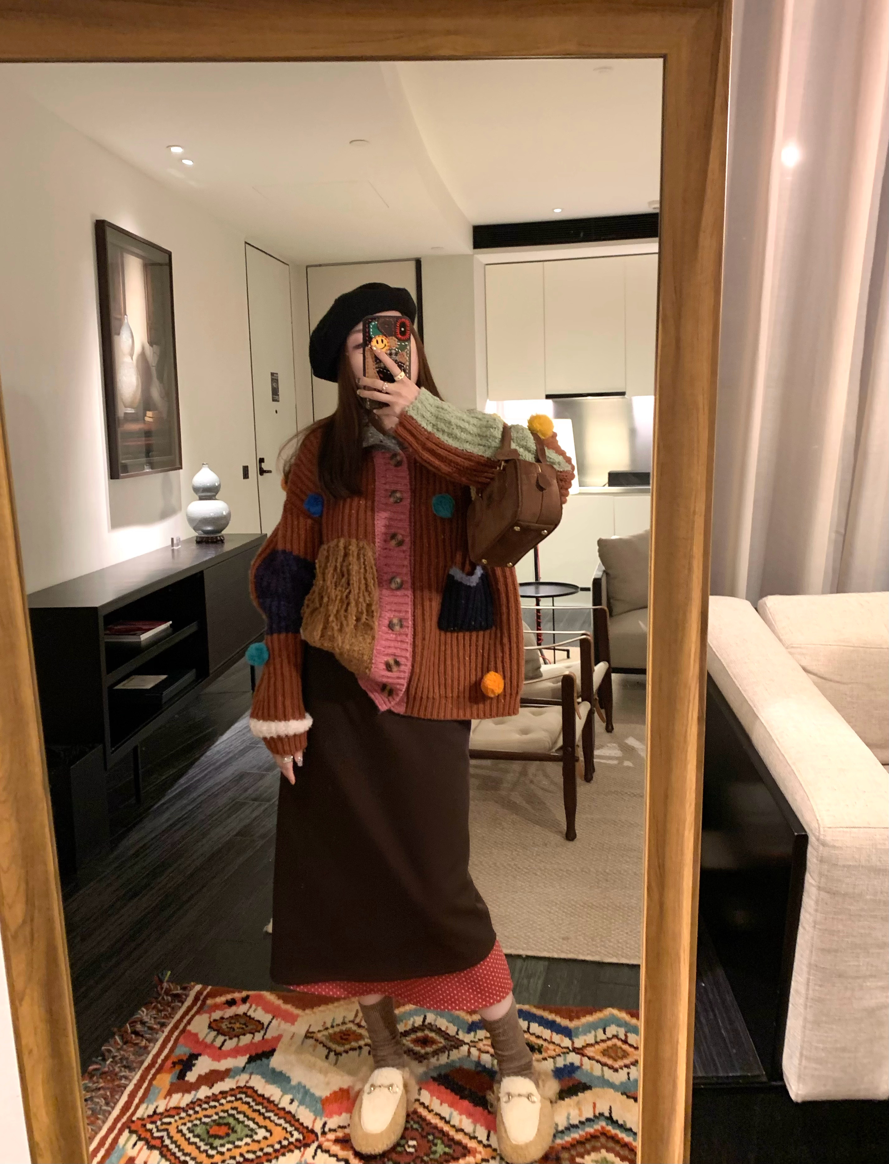 自带节日氛围的一件 精致细节看了就让人心情好 重磅系列整件是由【10种颜色拼接】其中四种纱线是100羊毛 六种纱线含有20羊驼毛