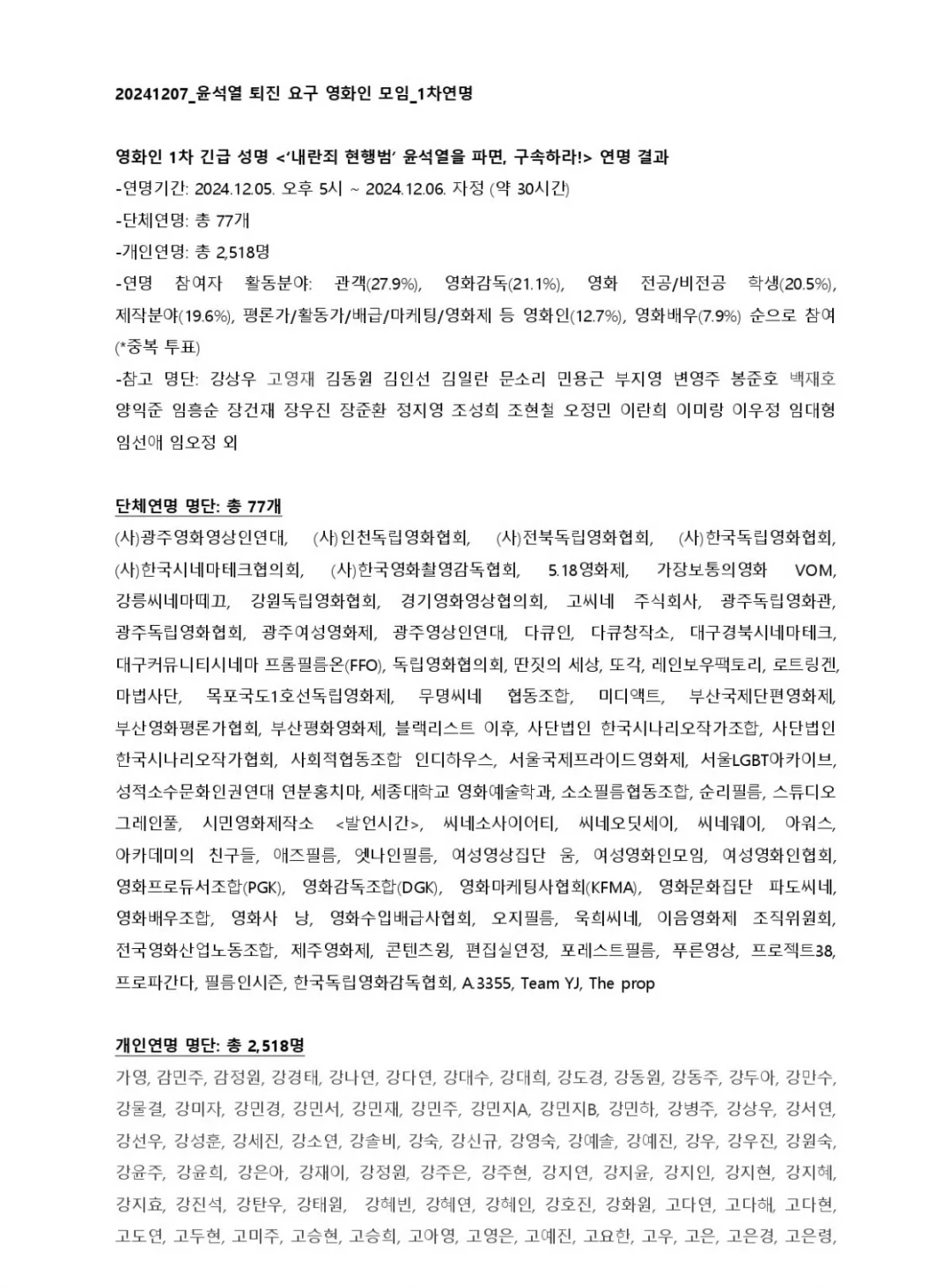 韩国电影人集体要求弹劾逮捕总统尹锡悦