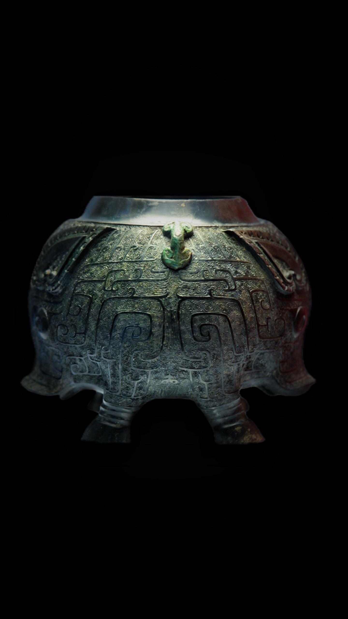 腹部满饰精丽的云纹,并由婉转流畅的羽状纹勾勒