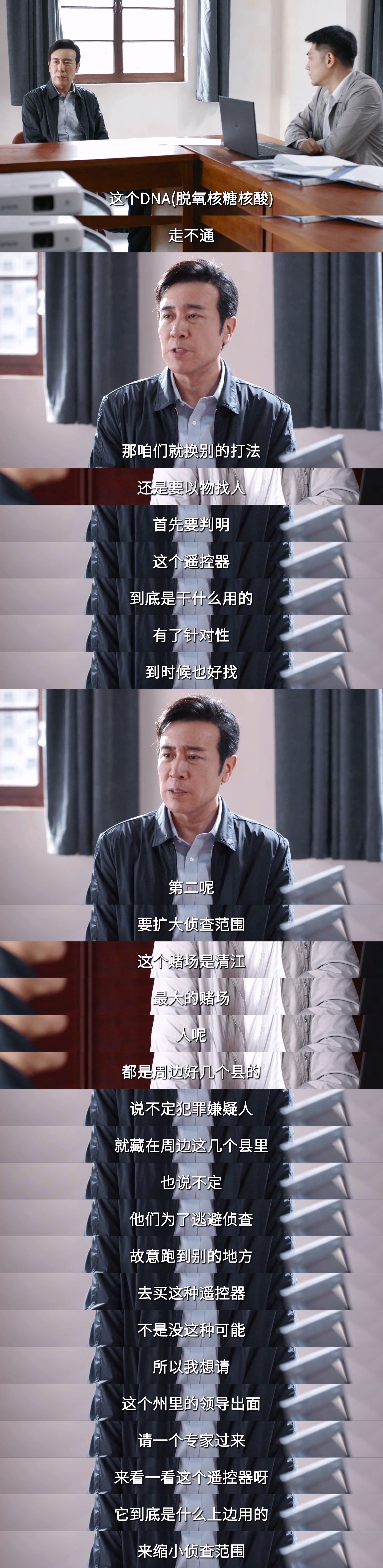 大家就这样用“苦办法笨办法”又连续工作几十天,几百号人蹲在地上找线索的画面冲击力无异于看到蚂蚁大海捞针。无果秦川就带领大家一起一点一点往外扩一寸寸翻找,牺牲自己的身体顶着巨大的压力坚持是他的魄力和破案的决心。即使最后找到了完整的遥控器但痕迹被冲刷 dna 检验仍走不通....