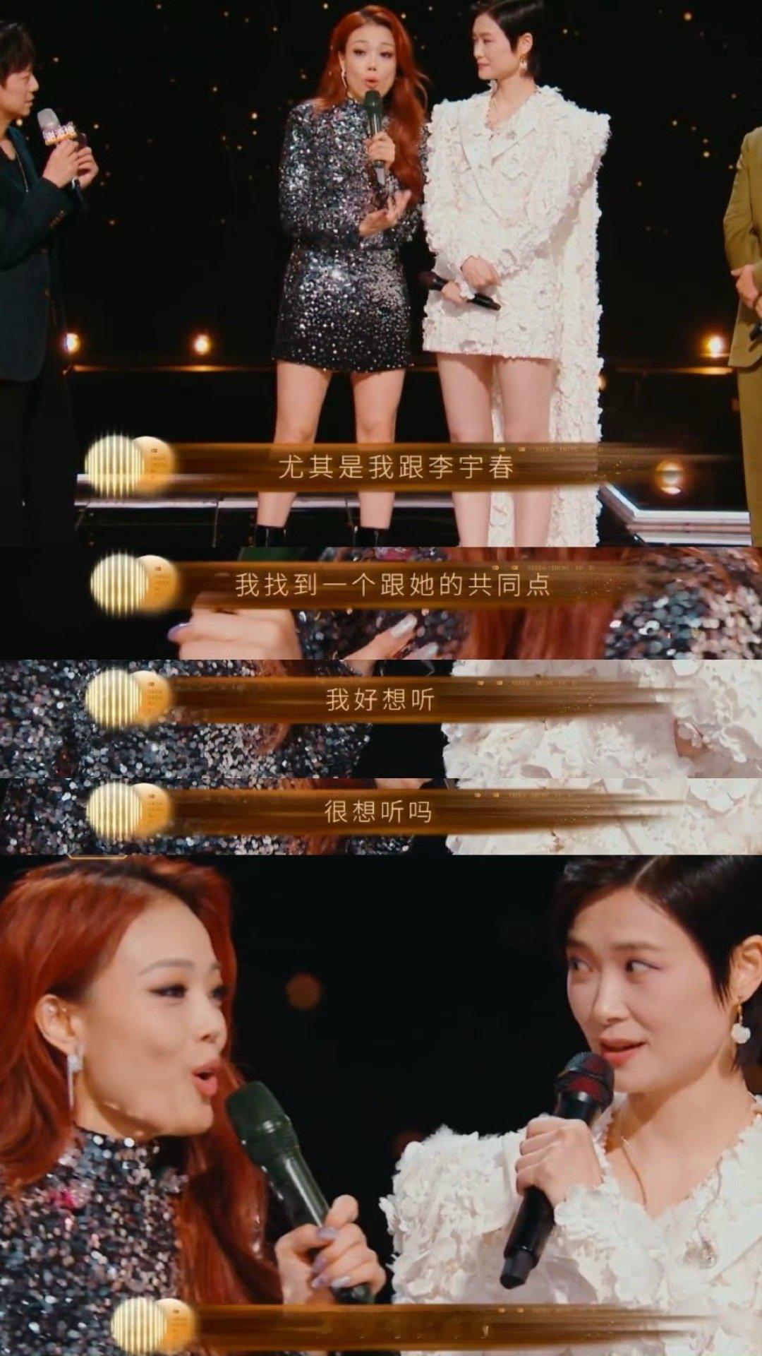 李宇春 自己吓自己 容祖儿和李宇春在舞台上的贴脸互动确实让人捧腹大笑,尤其是当提到她们都是同一个脸型时,这个梗更是让人忍俊不禁。