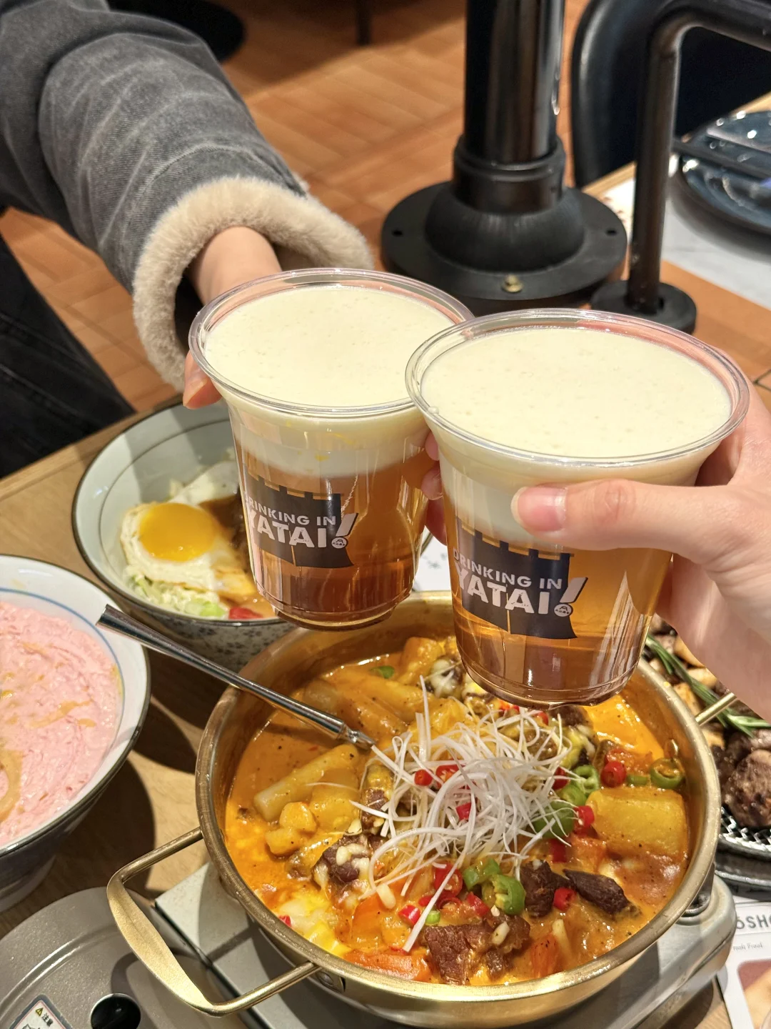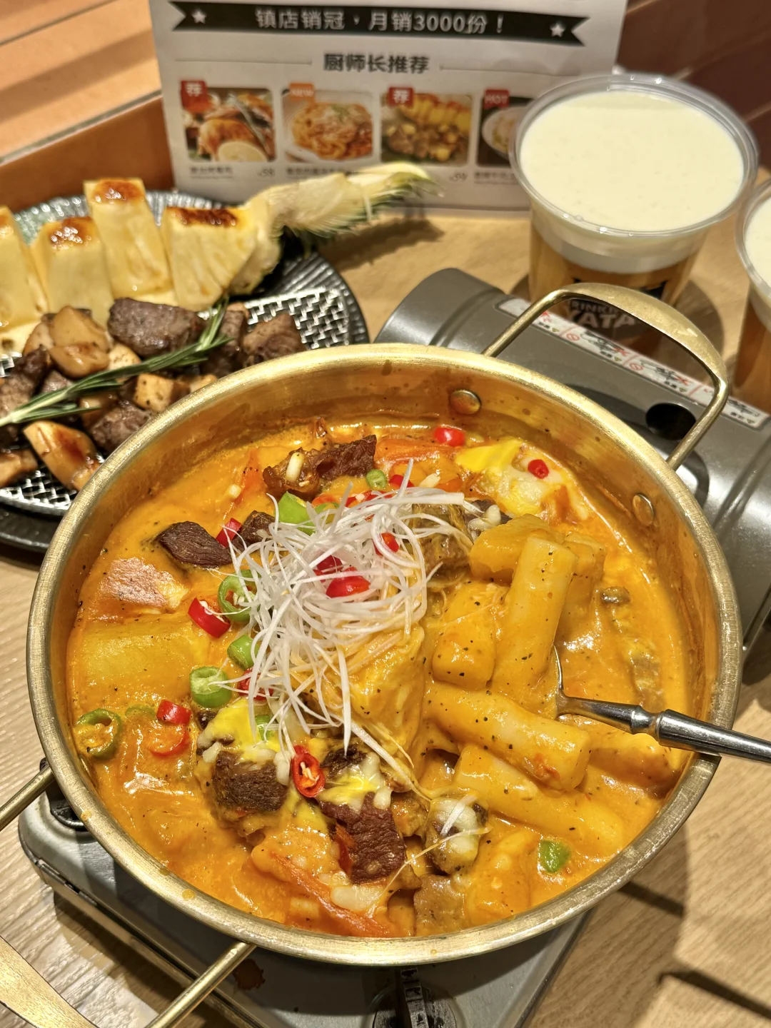 梦时代这里!! 已经来了很多次的二人食小店 - 这次吃上了粉红奶油🫧乌冬面 🤤咖喱味依旧好浓!! 每根乌冬面还有肥牛片都裹满了咖喱 嗦一大口香晕了 当然还要人手一杯黄油啤酒🍺好好喝👅