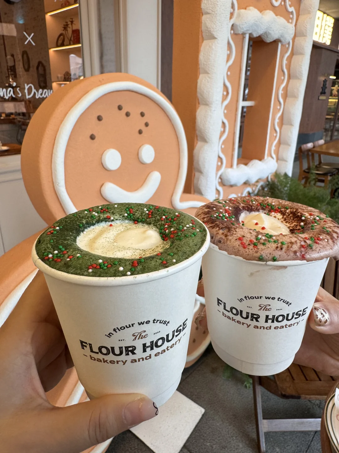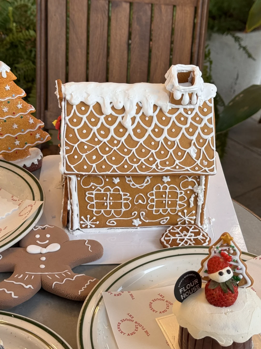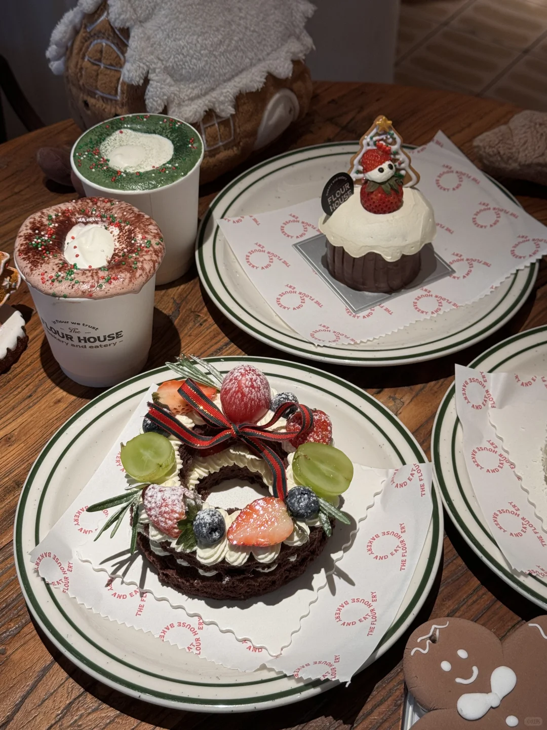 超大的姜饼人和房子,还有圣诞花环蛋糕和咖啡。 南京真的太超前啦