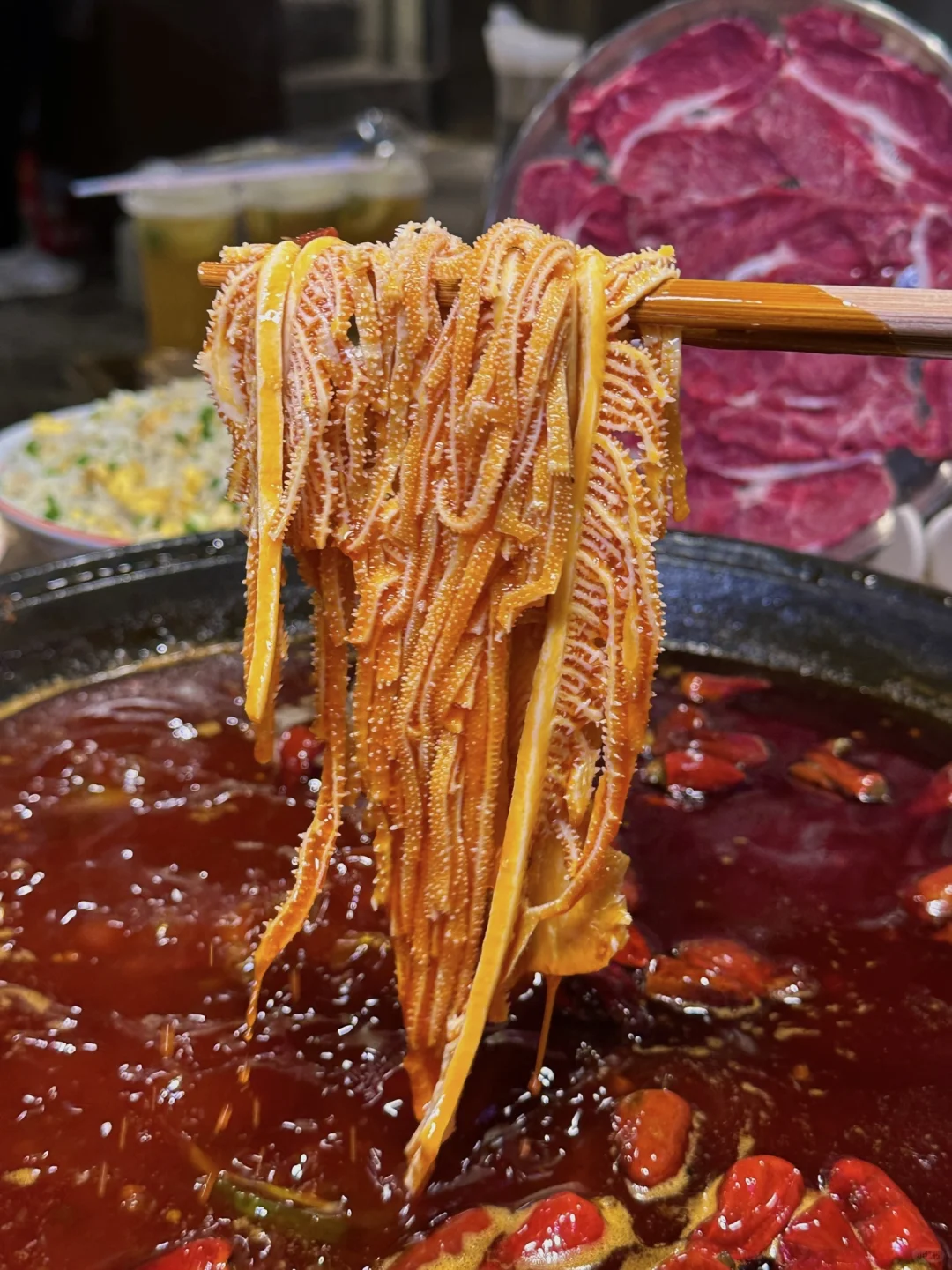 我打保票!谁来吃都难以忘记这家火锅的味道。 路过的时候就觉得特别很起眼的一家火锅,没想到…..绝了绝了👍。 ✔️火锅必配毛肚!屠宰场级别~上桌jue对是坠新鲜的品质!七上八下涮几哈炒鸡爽脆。 ✔️鸭肠、鹅肠太🉑了!建议试试和苕粉一起煮了捞起,粉又糯又q弹➕上鸭肠的爽脆,简直无敌了👏 晚上老板还要亲自上阵来唱歌🎤感觉瞬间来了🤣吃火锅已经够快乐!老板节奏一带i人都要变e人哈哈哈哈哈^_^这氛围哪里找得到!!!