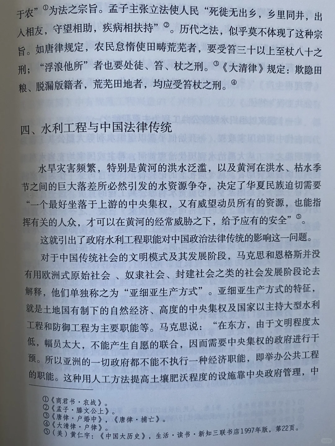 在小农经济的影响下,中国一切体 制构成构思均以一个小农家庭为蓝本与法治基础
