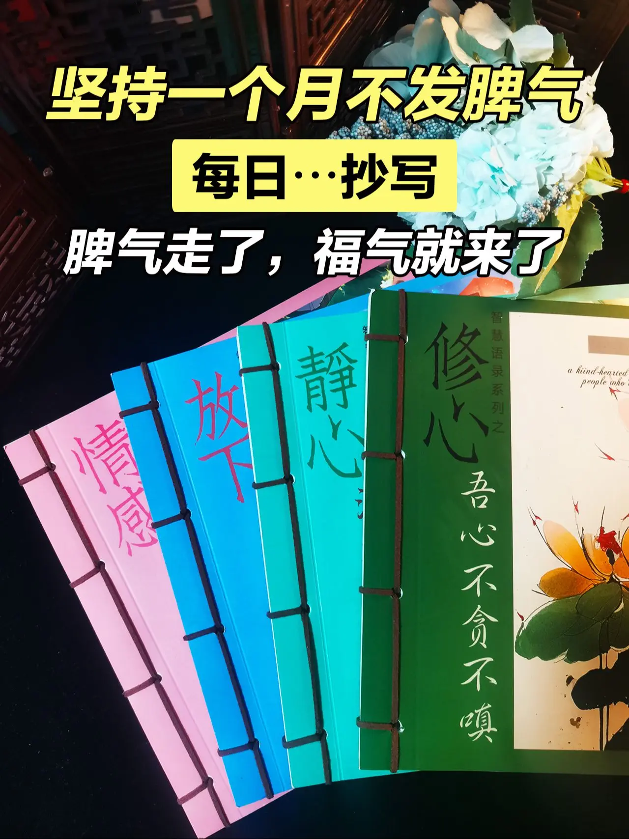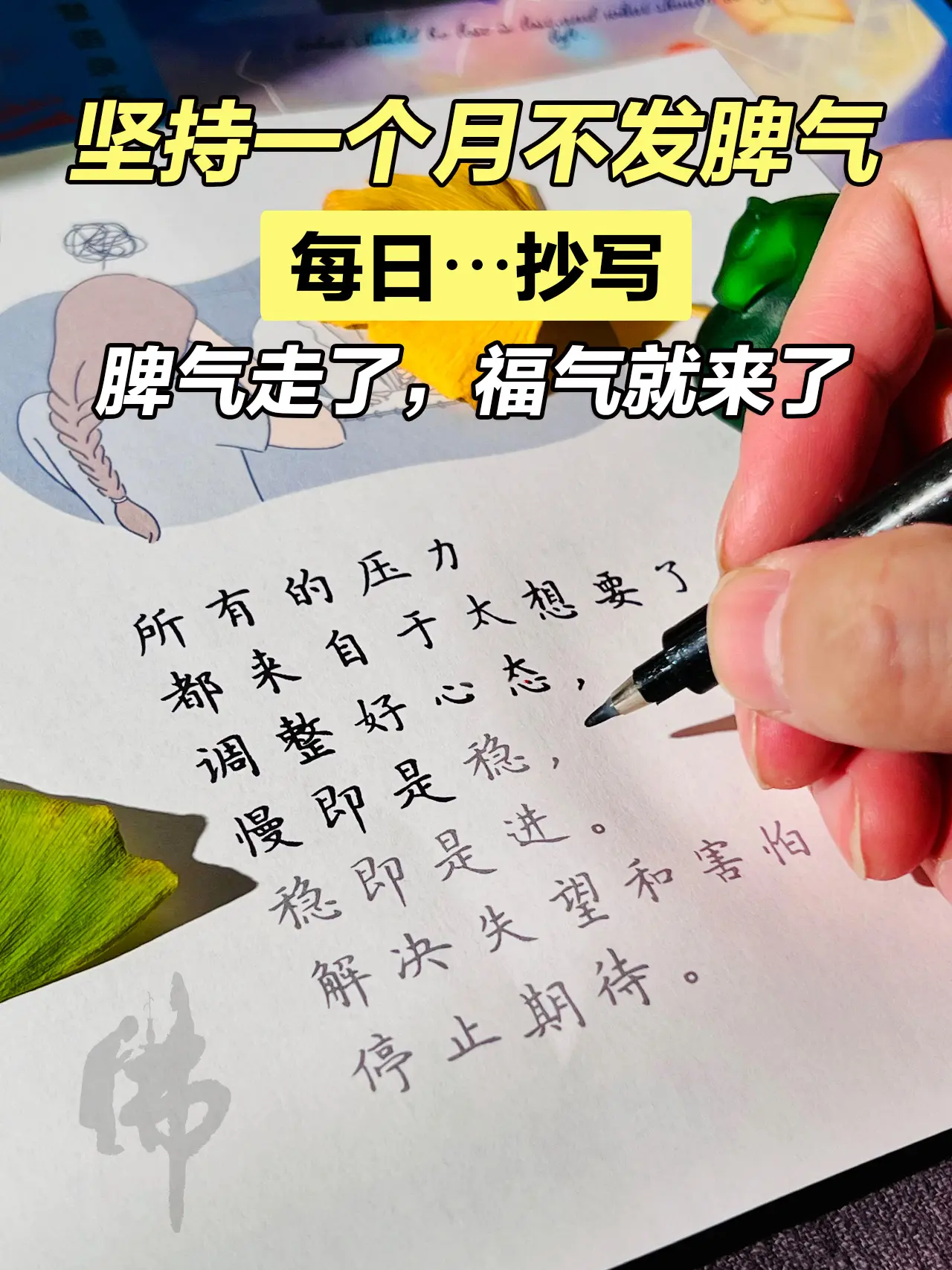 弘一法师曾经说过: "你所有的压力, 都是因为你太想要了, 你所有的痛苦, 都是因为你太较真了。 有些事不能尽你心意, 就是在提醒你该转弯了。" 低谷烦躁的时候,不要随意发脾气, 不妨试着抄一抄,让心慢慢静下来, 脾气走了,福气就来了。
