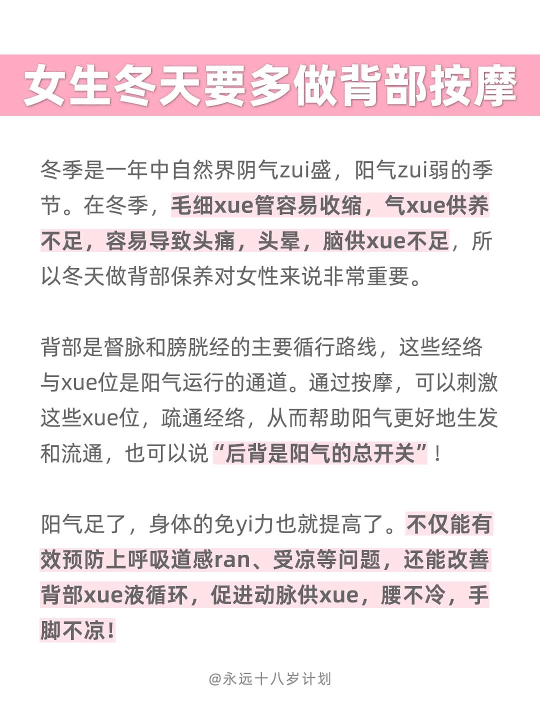 永远十八岁女生冬天要多做背部按摩