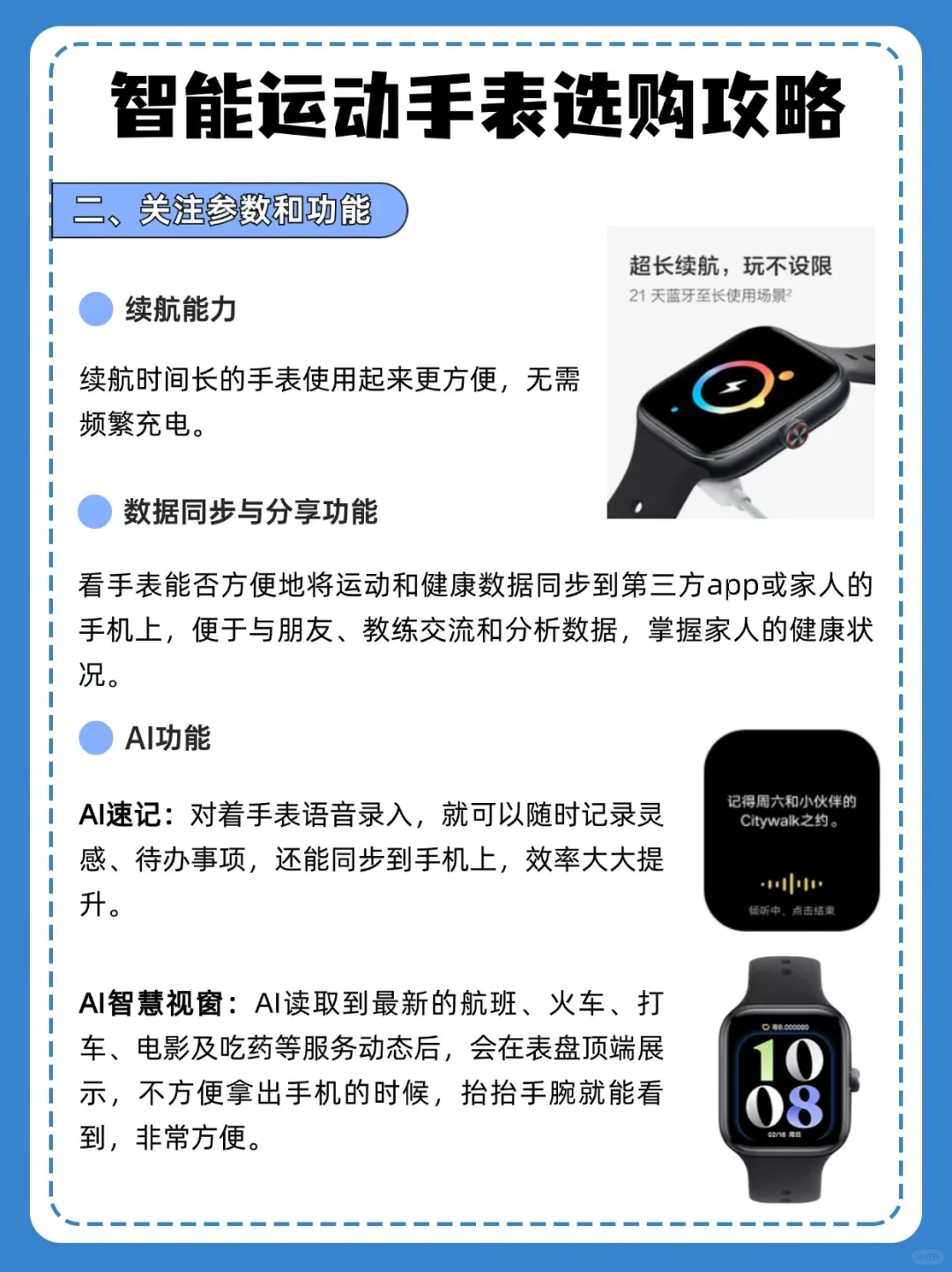 其次,关注参数和功能,可以看看续航时间长不长,有没有AI功能等等。