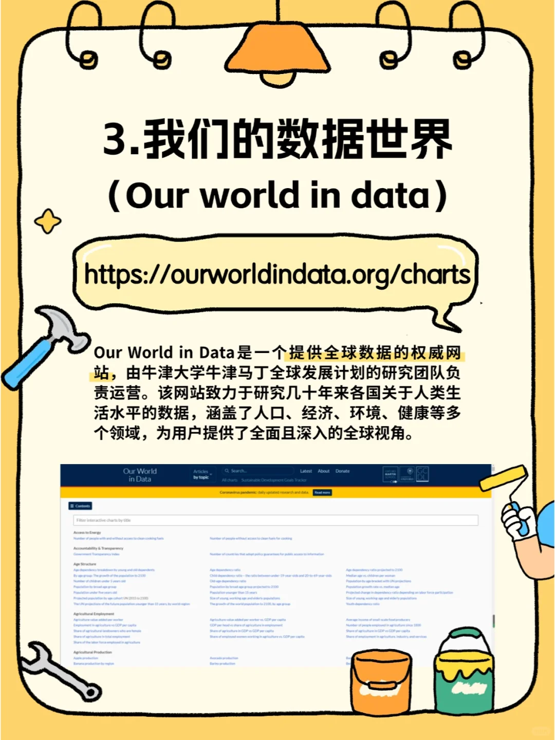 - 由牛津大学运营的权威网站,提供全球范围内关于人口、经济、环境、健康等多个领域的数据。