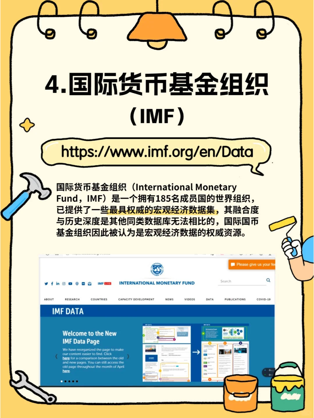 - IMF提供了权威的宏观经济数据集,其数据的融合度和历史深度是其他数据库难以比拟的。