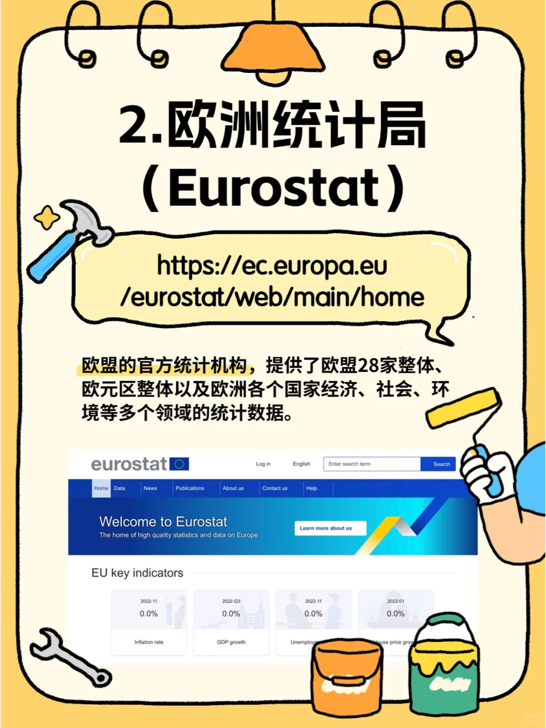 - 作为欧盟的官方统计机构,Eurostat提供了欧盟及其成员国在经济、社会、环境等多个领域的统计数据。