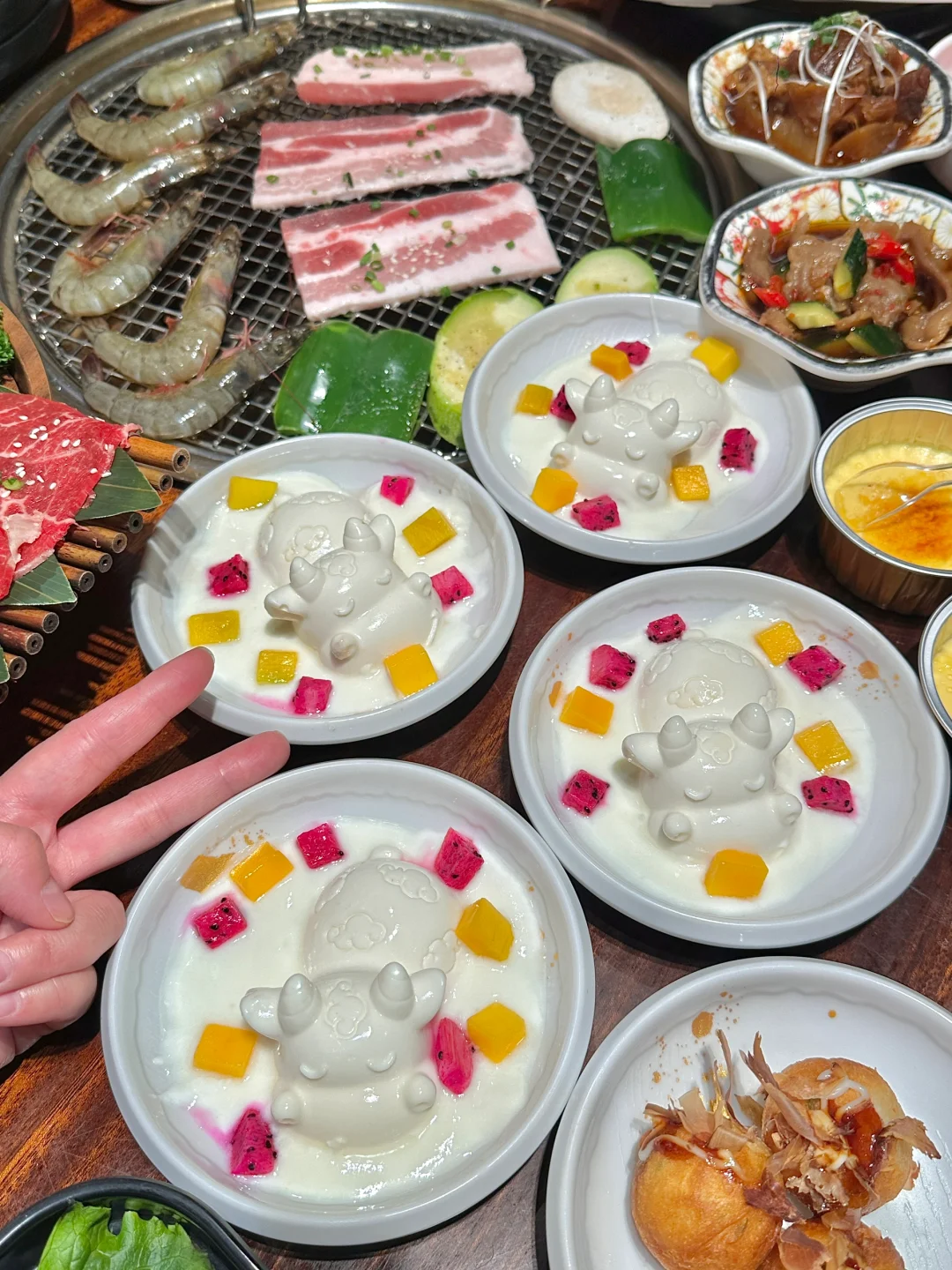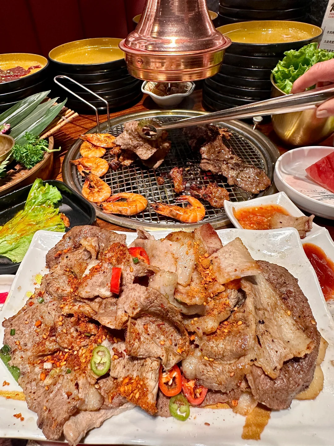 看到我桌上摞的盘子没?这些全部都随便恰! 而且是我中的霸王餐!哈哈哈! 哪怕不花一个子!我也要发挥实力!! 扶墙出才是对这家烤肉自助蕞大的礼貌🥰