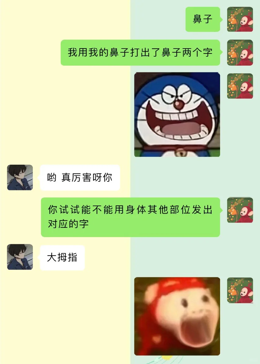 Ta一起来看 1⃣我脑子进水了和你风生水起 2⃣百年一遇的化学天才 3⃣直男:吐泡泡 4⃣可是你又怎能解我心锁呢 5⃣纹身派上用场了 6⃣亲弟 7⃣闺蜜劝分日常 8⃣小朋友 世界上没有魔法哟 9⃣如果你喜欢 我可以学 1⃣0⃣珍贵的礼物 1⃣1⃣不可以吃我的贡品 1⃣2⃣思路一下子就打开了! 1⃣3⃣是真的吗 1⃣4⃣试试用身体其他部位打出对应的字 1⃣5⃣我的戏精女友1 1⃣6⃣拿去买瓶安眠药 1⃣7⃣求求你了老公 1⃣8⃣一起试试你的输入法
