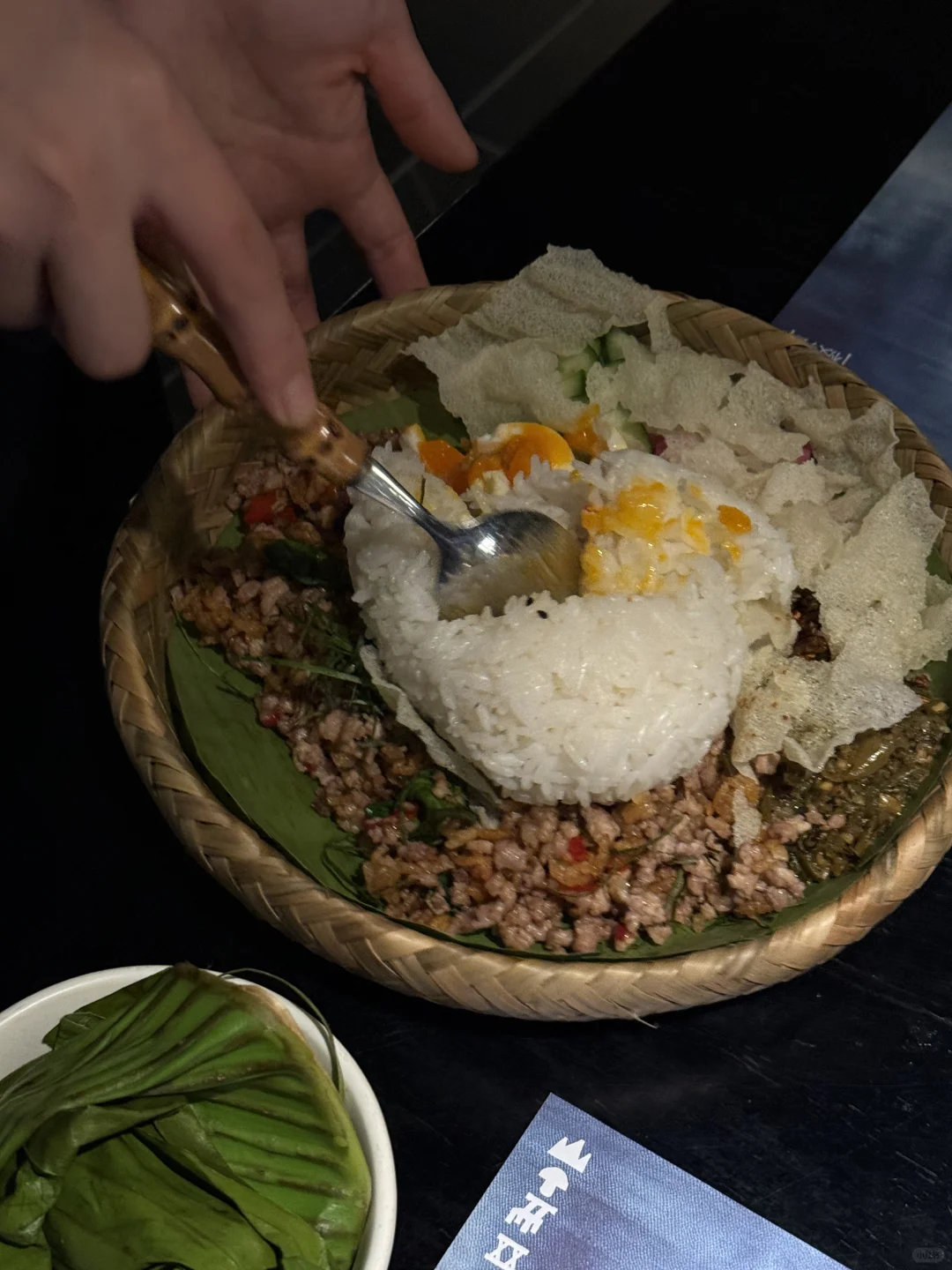 原来云贵川菜是这个味道! 点的几道肉菜每道都香香辣辣超有食欲 云南佤族手抓饭碳水脑袋都会爱 肉燥很有味道搭配香料的味道很有特色 贵州豆腐丸子可以自己DIY加小料 特调草莓🍓椰子糖🍬就像名字一样 喝起来奶呼呼的 而且会有很好看的烟雾效果 很适合约会和朋友小聚 还有鸡尾酒可以小酌微醺🥂