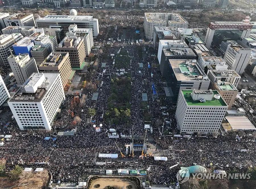 韩国总统尹锡悦遭弹劾后数千人欢庆 当韩国议会通过投票,弹劾尹锡悦本月早些时候实施戒严令时,首尔街头挤满了约 145,000 名抗议者,他们爆发出欢呼声。 他所在的国民力量党的 12 名成员突破党派界限,投票支持弹劾。 来源:韩联社