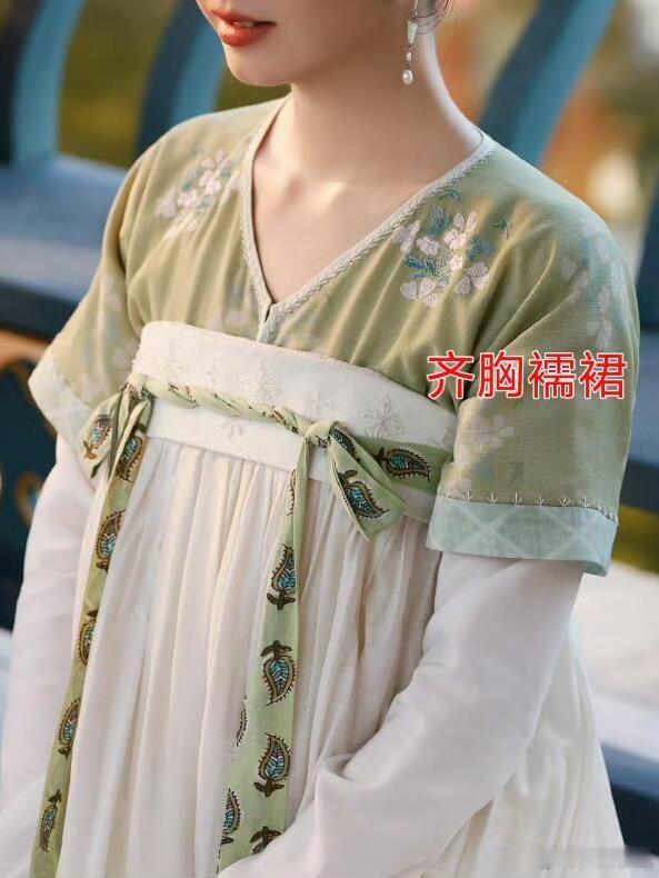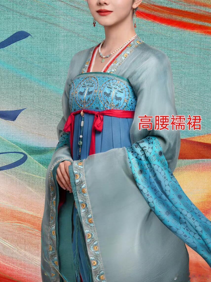 2⃣️按照裙腰的高低不同,襦裙可分为齐腰襦裙、高腰襦裙和齐胸襦裙。