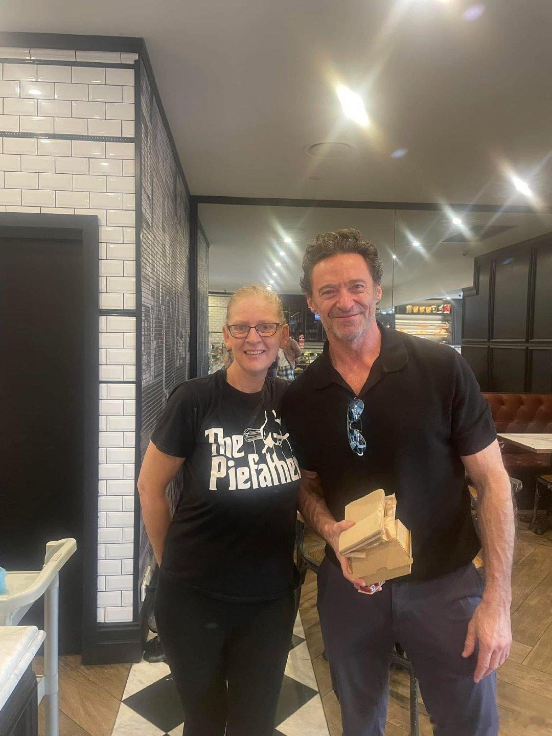 HughJackman[超话]回澳洲了,和空姐还有烘焙店员工的合影