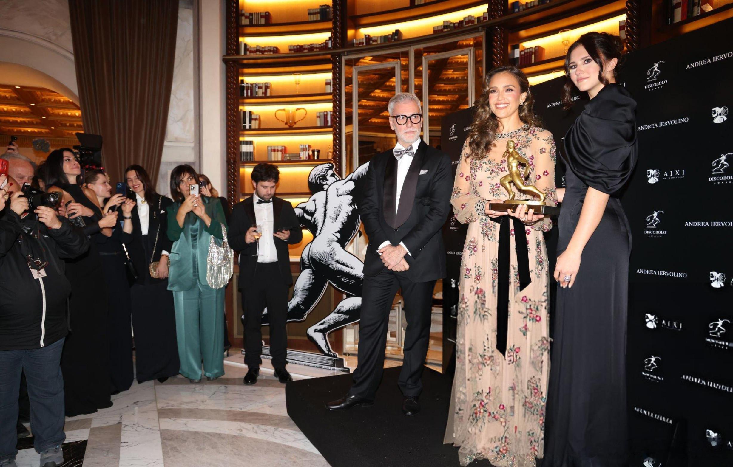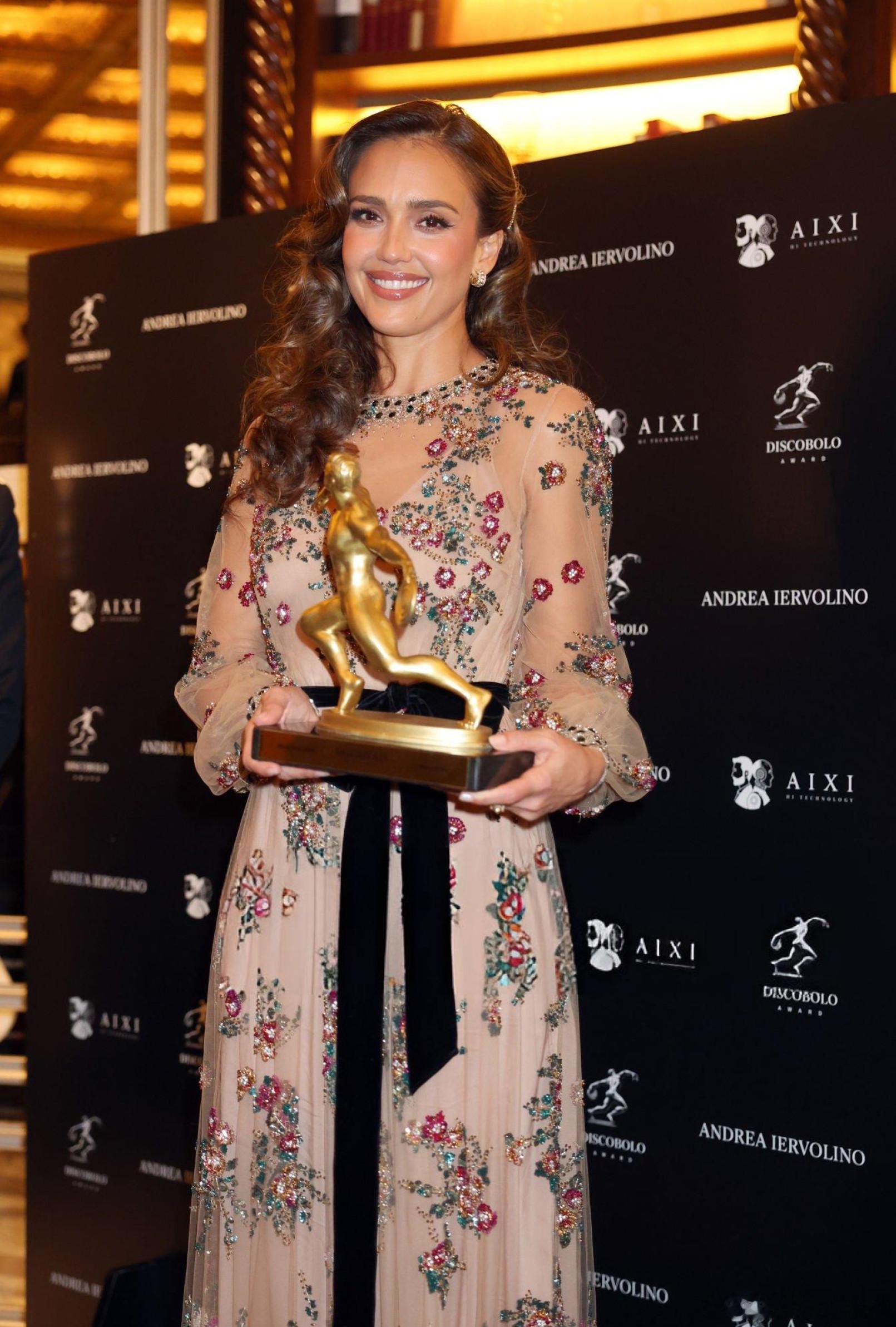 jessica alba 杰西卡阿尔芭在意大利罗马出席Discobolo Award颁奖礼,芭姐和新片《玛莎拉蒂:兄弟》剧组卡司一起亮相,这个奖也是为整个剧组颁发