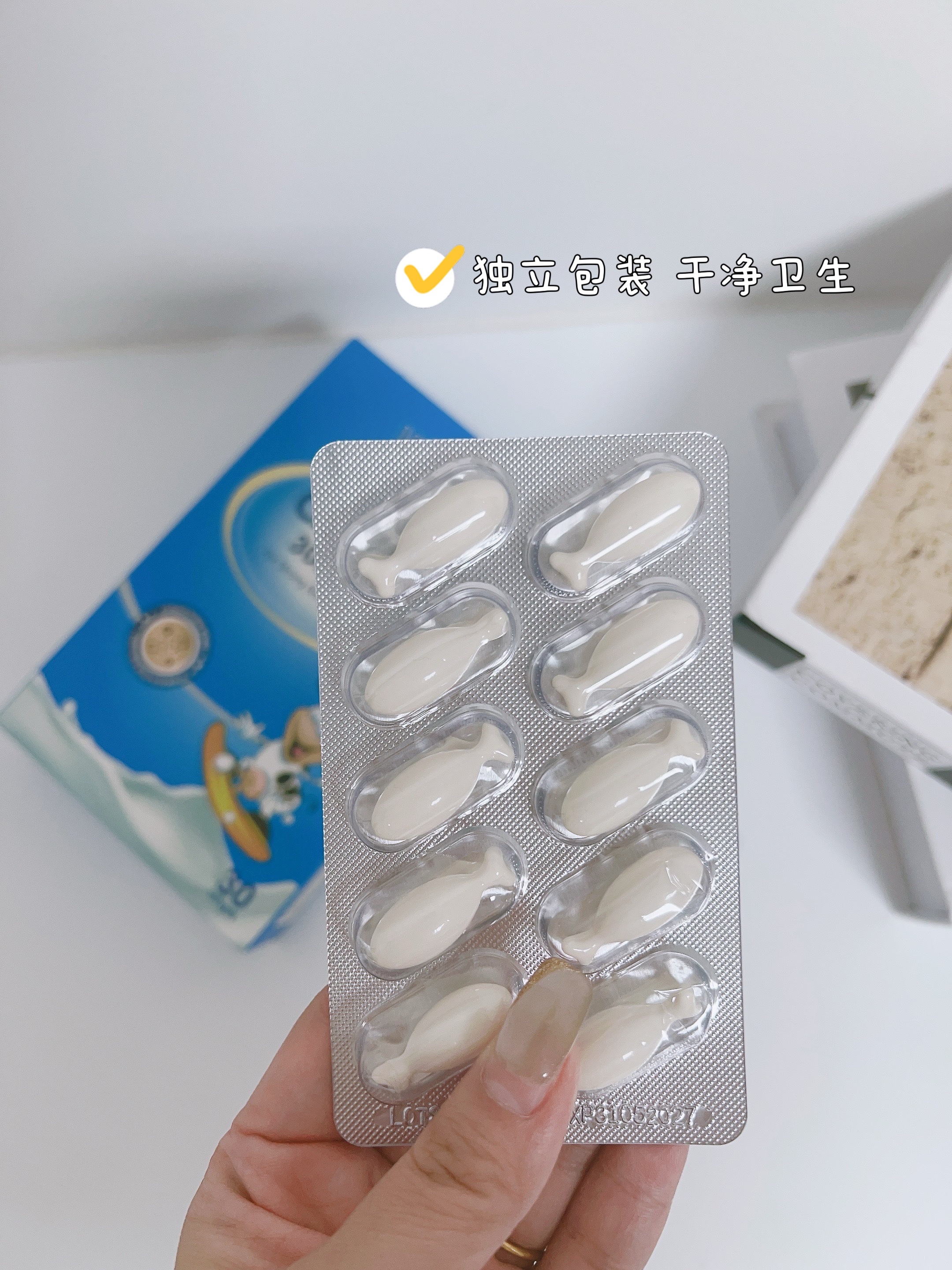 每粒含钙量足足300mg呢,等于三杯牛奶的钙量口感也很清爽,像酸奶一样的质地细腻顺滑宝宝试了一次就很喜欢。宝宝补钙健敏思小蓝盒液体钙儿童补钙