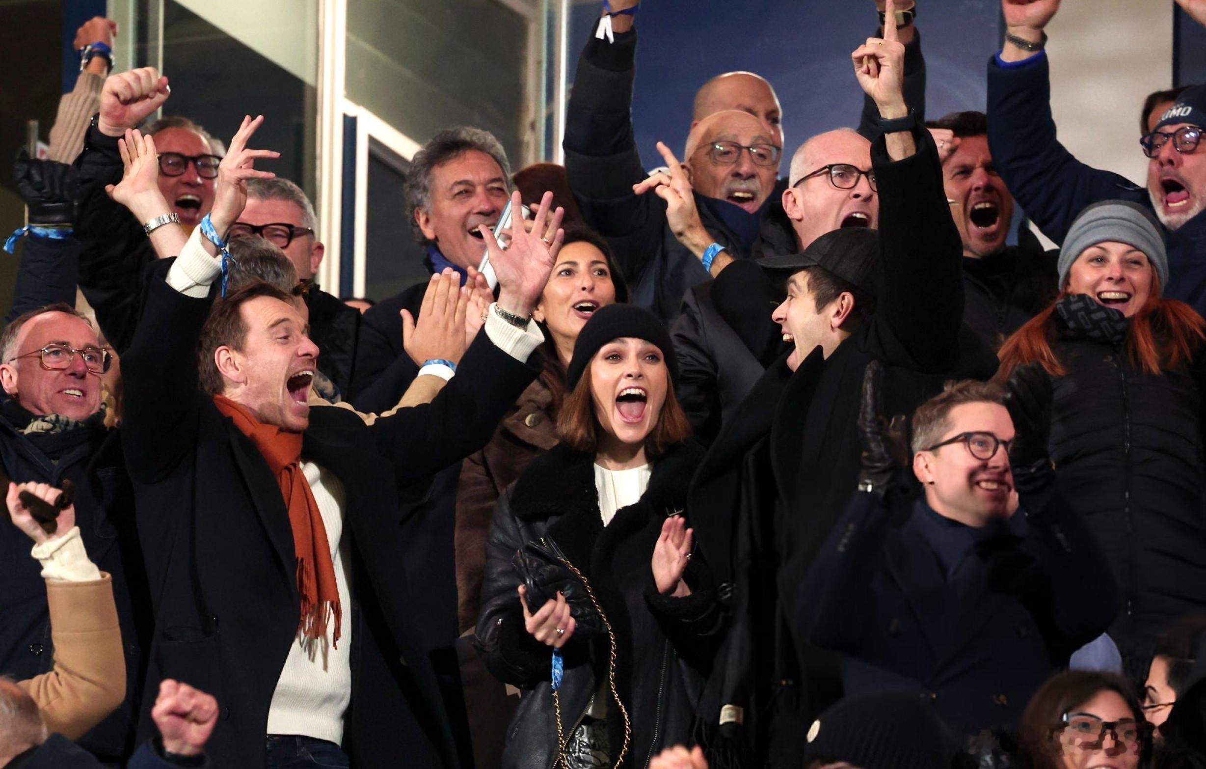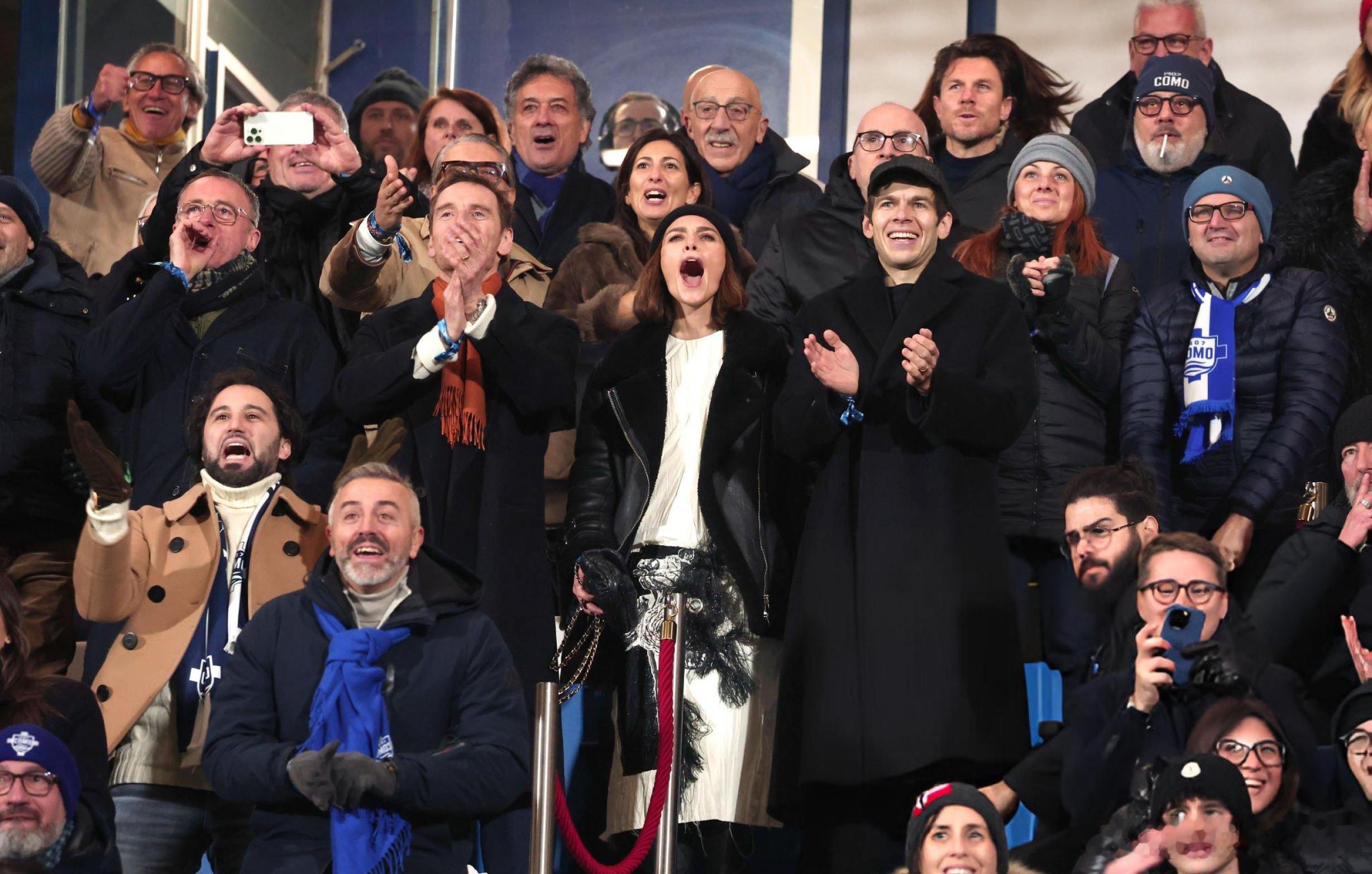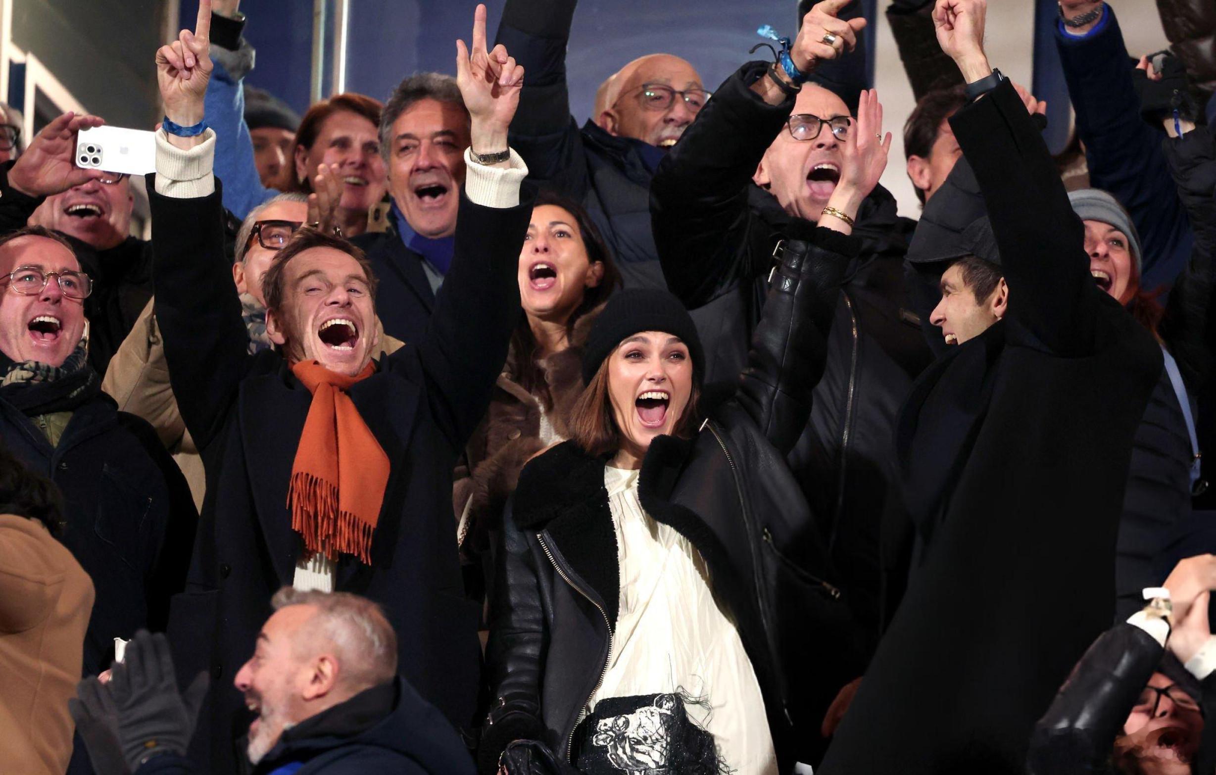 Keira Knightley 凯拉奈特莉和老公James Righton詹姆斯莱顿,还有好友Michael Fassbender一起在意大利科莫观看足球比赛,进球时三人随观众席起身欢呼