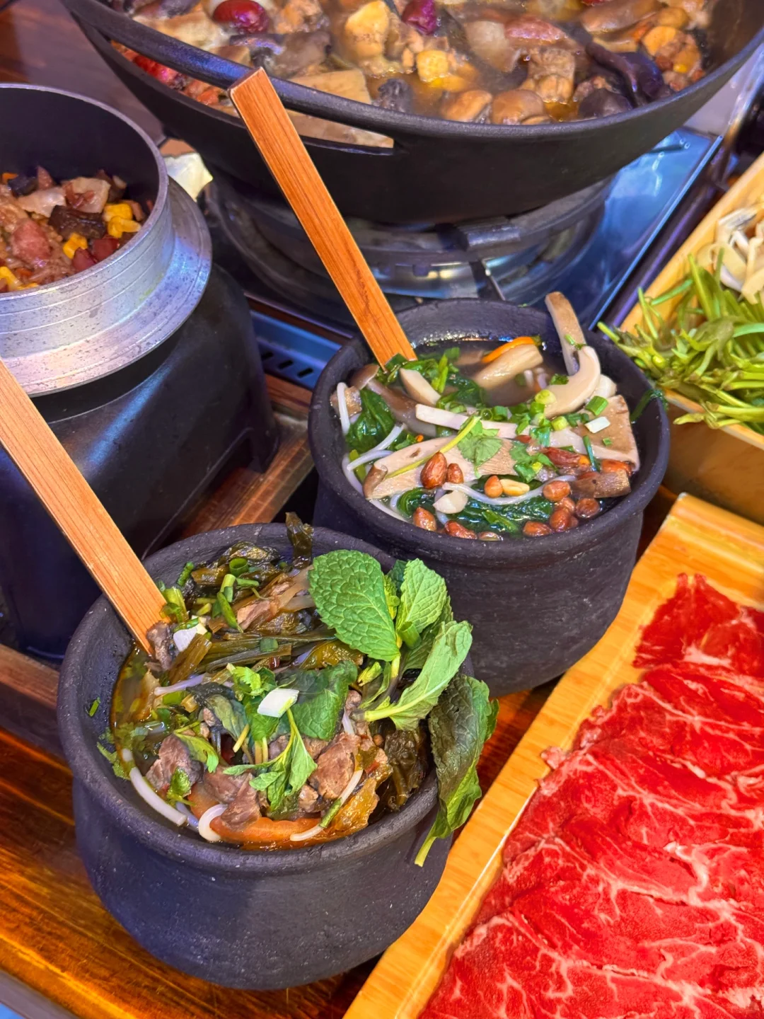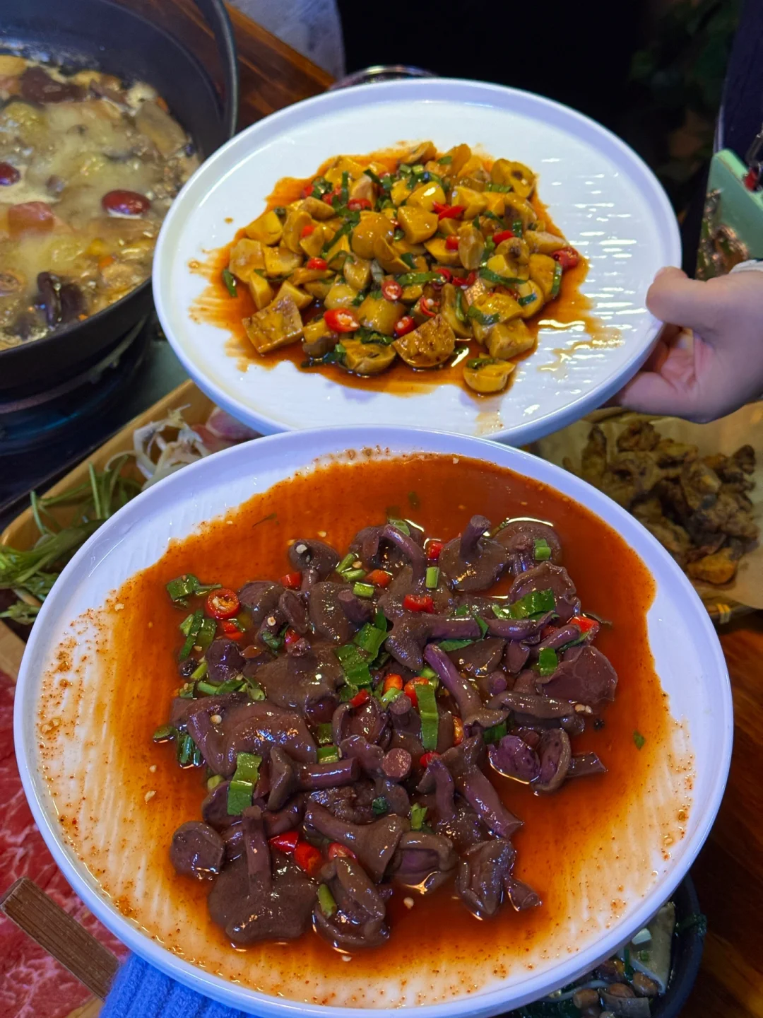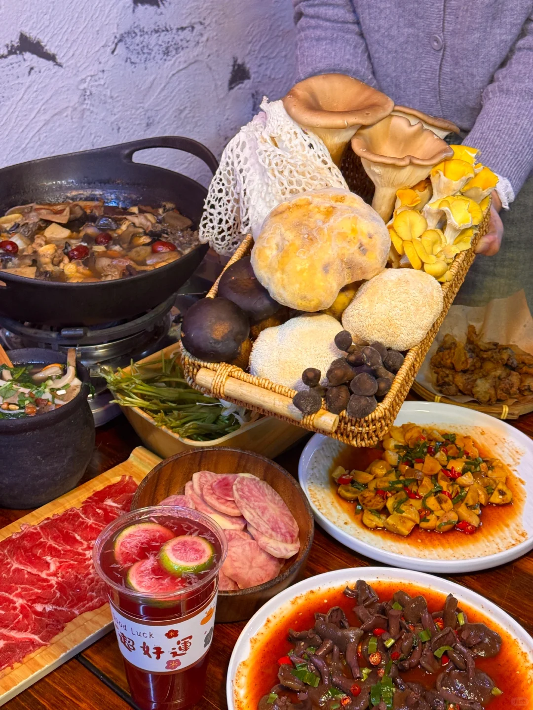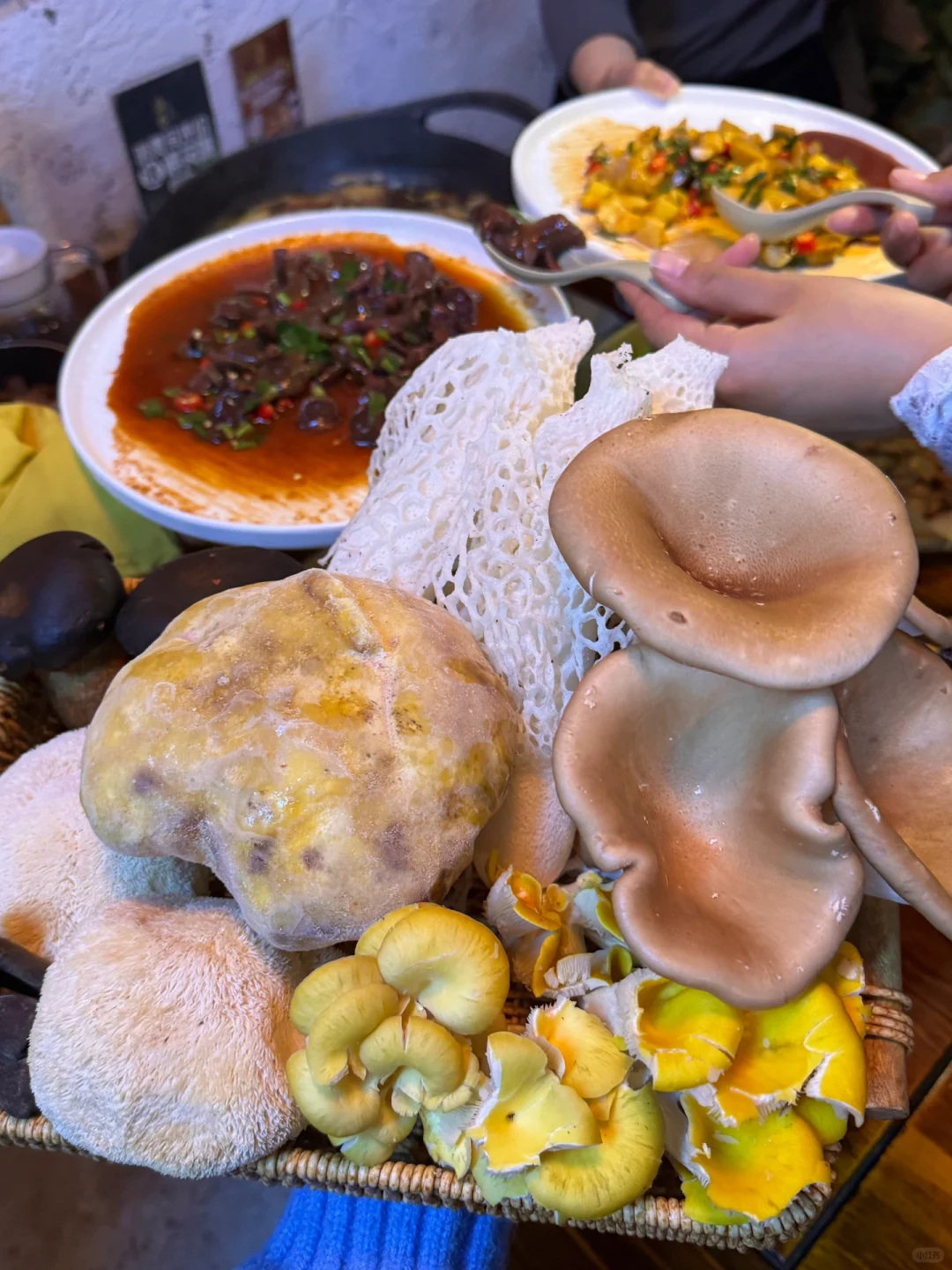 没去过云南,但被云南朋友强烈安利了这家菌子火锅,据说是由羊肚菌、竹荪、黑牛肝菌…共28种菌子熬出来的菌菇汤 - 云南的菌子太丰富了,好多都叫不上名字,这一锅菌菇汤再配玉龙雪山鸡,含金量太高了,很鲜,菌菇味也很浓,怪不得能征服云南朋友的味蕾 - 最惊喜的是头一次吃到了生腌见手青和凉拌红乳牛肝菌,吃之前很忐忑,吃了之后真香!脆脆滑滑又很鲜,和云南朋友一顿炫耀😍