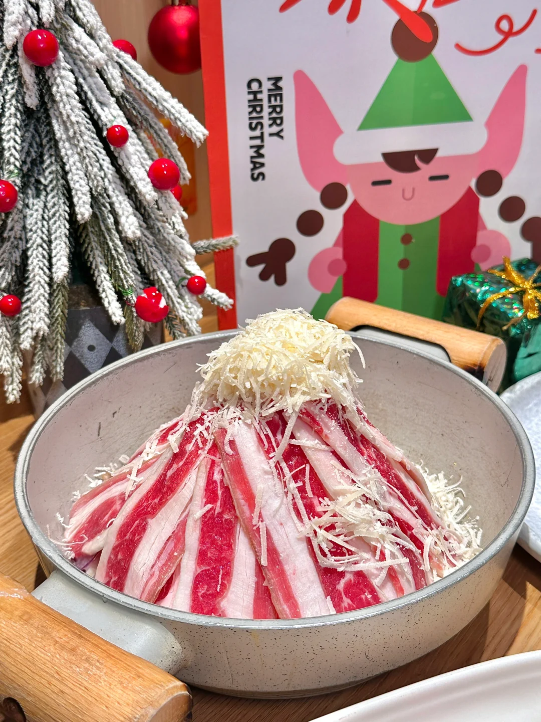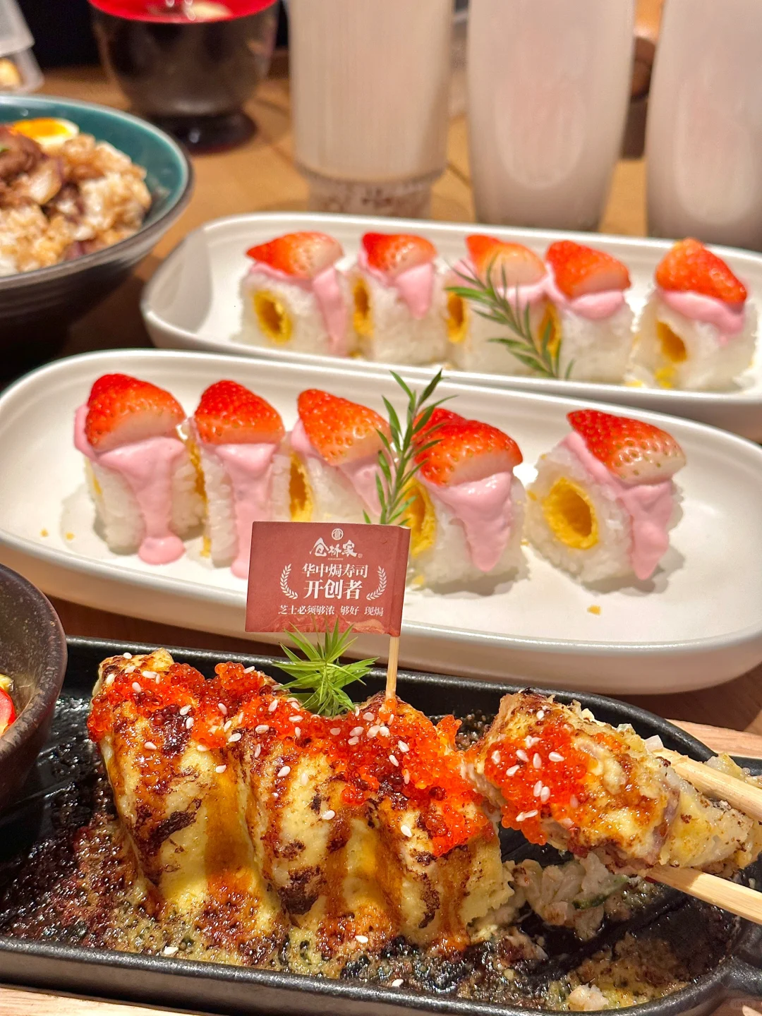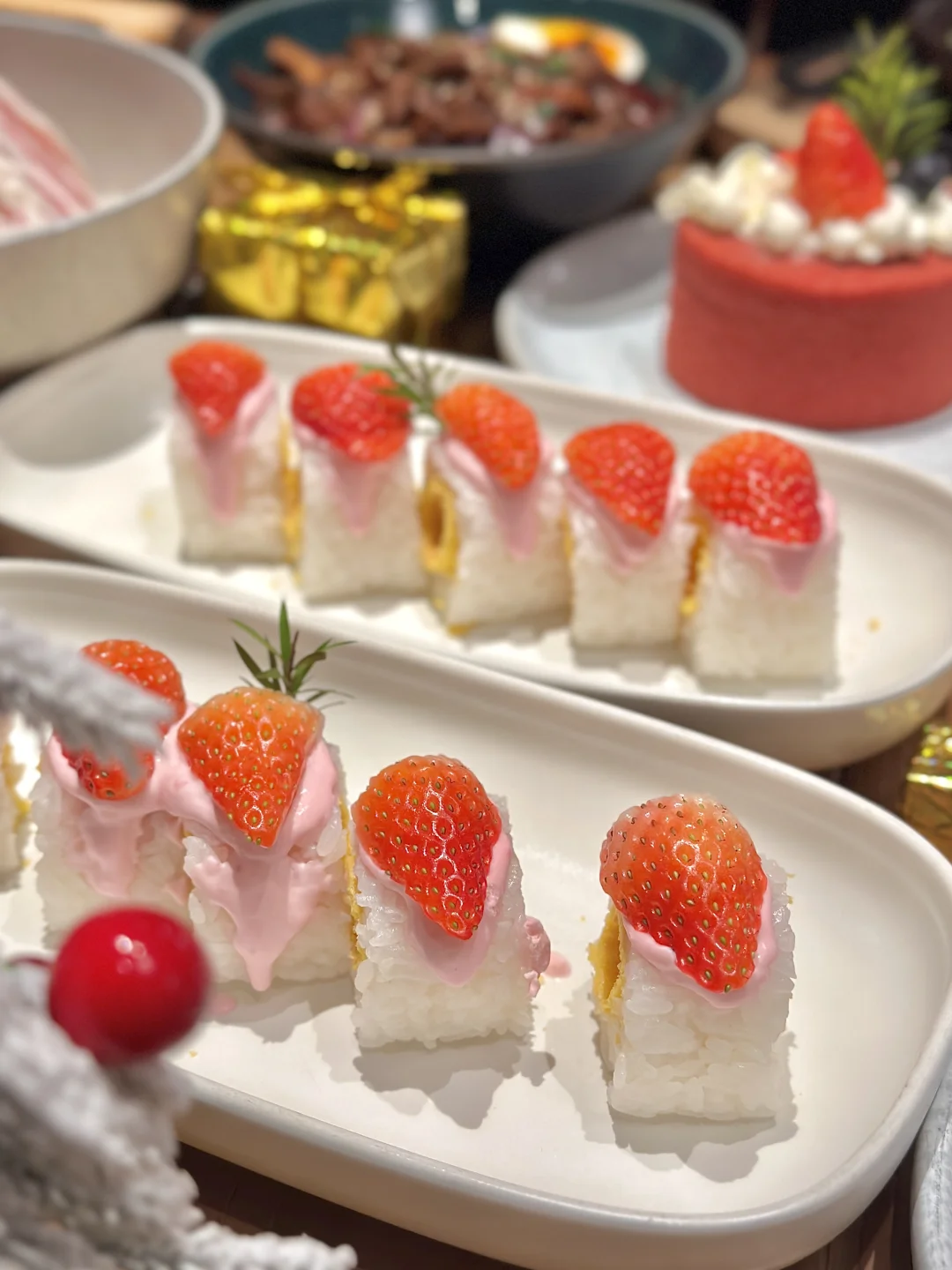 已经N刷的日料店,在圣诞节这块也拿捏住! 冬日限定的新菜我可太喜欢了!🫰 圣诞红丝绒蛋糕、空心草莓寿司,都好漂酿!草莓脑袋完全抵抗不了!马上炫一大口,赶紧发~ 雪花芝士牛肉锅,这个天气吃太虚浮了~ 浓郁的的芝士和肥牛一起越煮越香! 口口肉的不要太过瘾! 还有焗寿司、烤串拼盘、和牛烧肉饭,全部光盘行动
