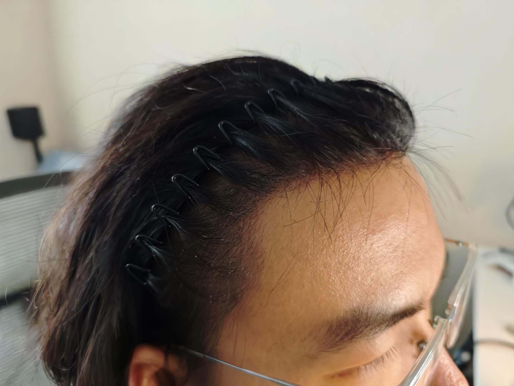先是用脉冲微针上麻药,上完后头皮感觉贴上了十层大力胶,巨硬,感觉自己可以表演少林铁头功。