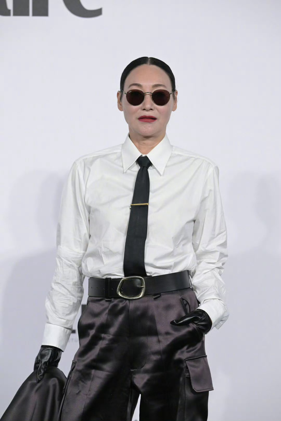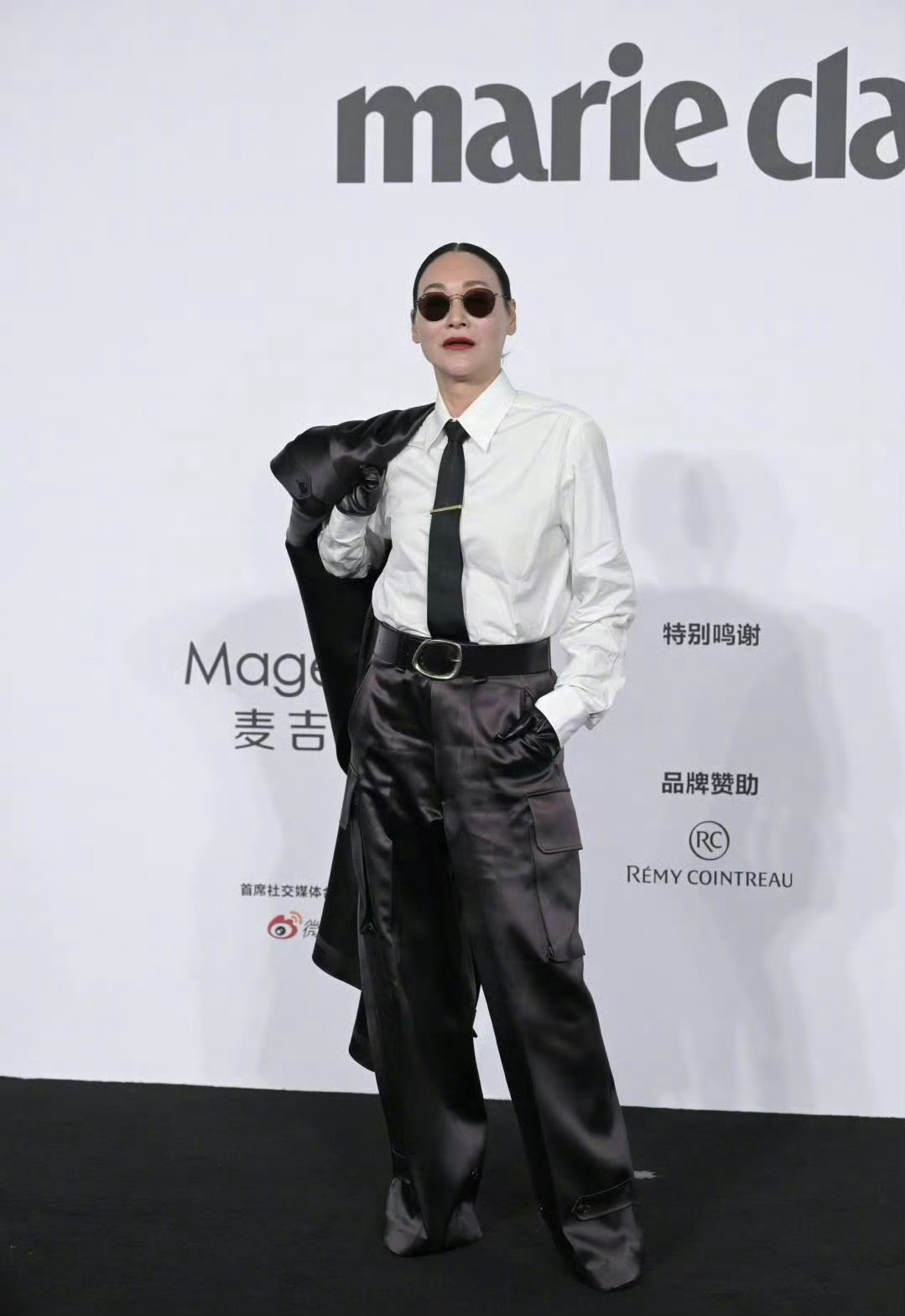 惠英红红毯脱大衣惠英红一袭白色衬衫黑裤亮相红毯。