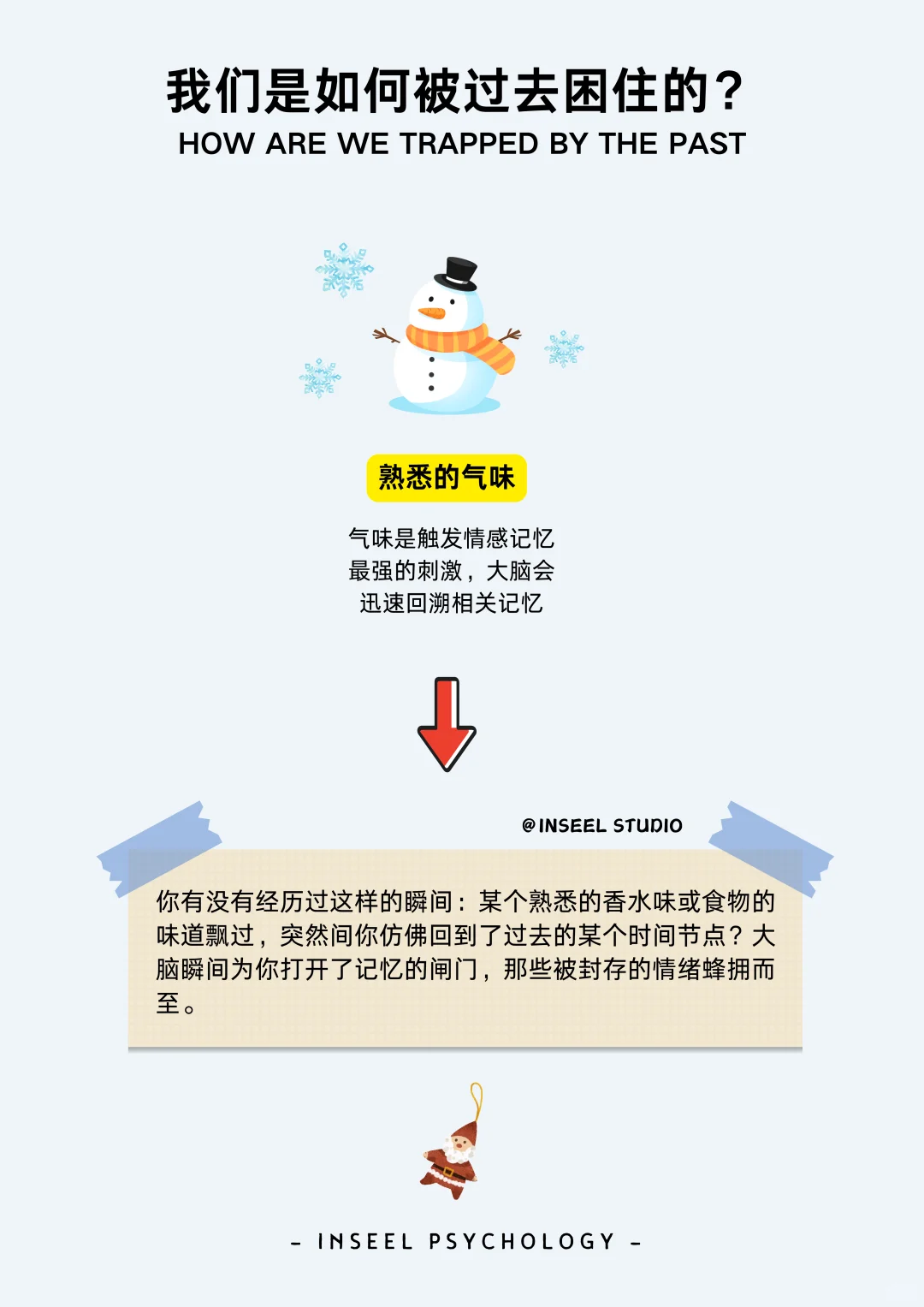 我们的大脑就像一台精密的记录仪,保存着关于我们生活的方方面面,尤其是那些深刻的记忆:那些痛苦、创伤以及引起强烈情绪的经历。这些记忆并非孤立存在,它们潜伏在我们的潜意识中,一旦被“触发因素”唤醒,便会以让人猝不及防的方式卷土重来。这里有六种常见的触发因素,解释了为什么我们会不由自主地重温过去的痛苦,被它深深束缚… 1.熟悉的人 👉我们与他人互动时,大脑中的“镜像神经元”会自动匹配我们曾经的情感体验。如果某个新认识的人有类似于曾经伤害过我们的人的特征,就会迅速激活情绪记忆系统,重新唤醒当初的创伤感受。 💛例如在童年时间遭遇过家庭冷暴力的人,可能在长大后面对别人轻描淡写的语气产生强烈反应,有一种被忽视的失落感。 2.旧有的习惯 👉人的行为习惯往往是自动化的,尤其是当它得到某种“正反馈”后,这种行为习惯会被固化。 💛例如,一位在学生时期因过度追求完美而患上焦虑症的人,步入职场后,尽管意识到自己的焦虑来自于过度追求完美的习惯,依然无法摆脱这一模式。他的大脑早已将完美主义等同于“安全感”。 3.熟悉的气味 👉气味是触发情感记忆最强的刺激之一。因为我们的嗅觉系统和大脑处理情感的区域是紧密相连的,气味会通过嗅觉神经直接传递到大脑的边缘系统(海马体和杏仁核)。这时,大脑会迅速回溯和这种气味相关的记忆。 💛例如一位曾长期遭受校园霸凌的成年女性,在街上偶然闻到与当年某个欺负她的人身上相同的气味时,那段痛苦的记忆会迅速席卷而来。 4.熟悉的地点 👉在某些能够触发过去记忆的场景里,大脑会唤起和这个环境有关的情感和记忆。 💛例如一位曾在十字路口发生过交通事故的人,可能每次路过相似的地点时都会心跳加速、身体冒汗,仿佛身体被困住在了那一瞬间。 5.说话的语调 👉对那些有过创伤经历的人来说,那些尖锐的、带有命令和威胁性的语气会激活杏仁核的反应,引起战或逃反应。 💛例如上司充满压迫性和命令式的发言激起了员工的强烈反应,这位员工小时候经常遭到父母的训斥,尽管他知道老板并不是针对他,但还是感到非常焦虑和不适。 6.时间的印记 👉特定的时间、节日或季节变化会诱发情感回忆,尤其是那些发生过重大事件的时期。 💛例如,一对在圣诞节前夕分手的情侣,每年到了这个时节,总会感到无法控制的低落和悲伤。