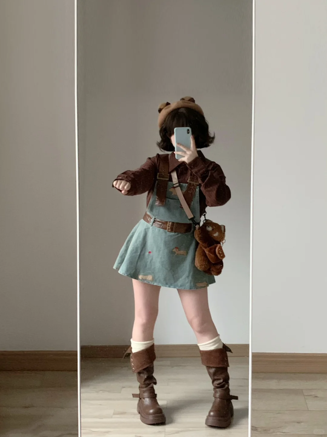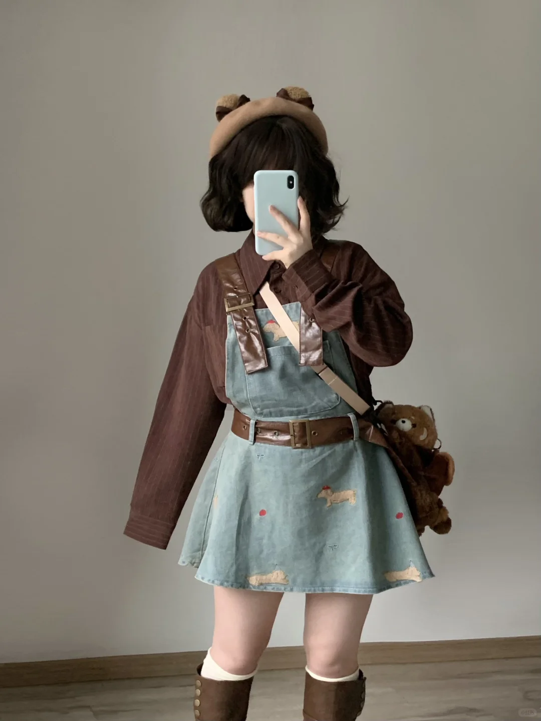 微胖穿搭 可爱穿搭 棕色系穿搭 背带裙 甜妹穿搭 复古穿搭 显瘦穿搭 可爱穿搭 小个子穿搭