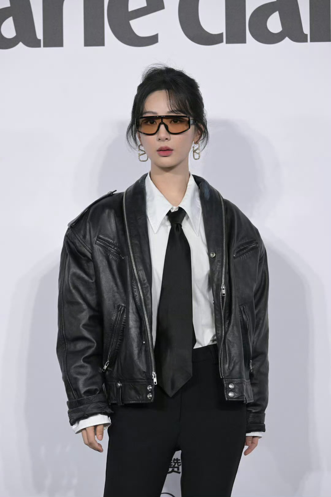 杨紫酷妹杨紫皮衣喇叭裤复古造型好酷好飒,小猴紫状态太棒啦杨紫[超话]