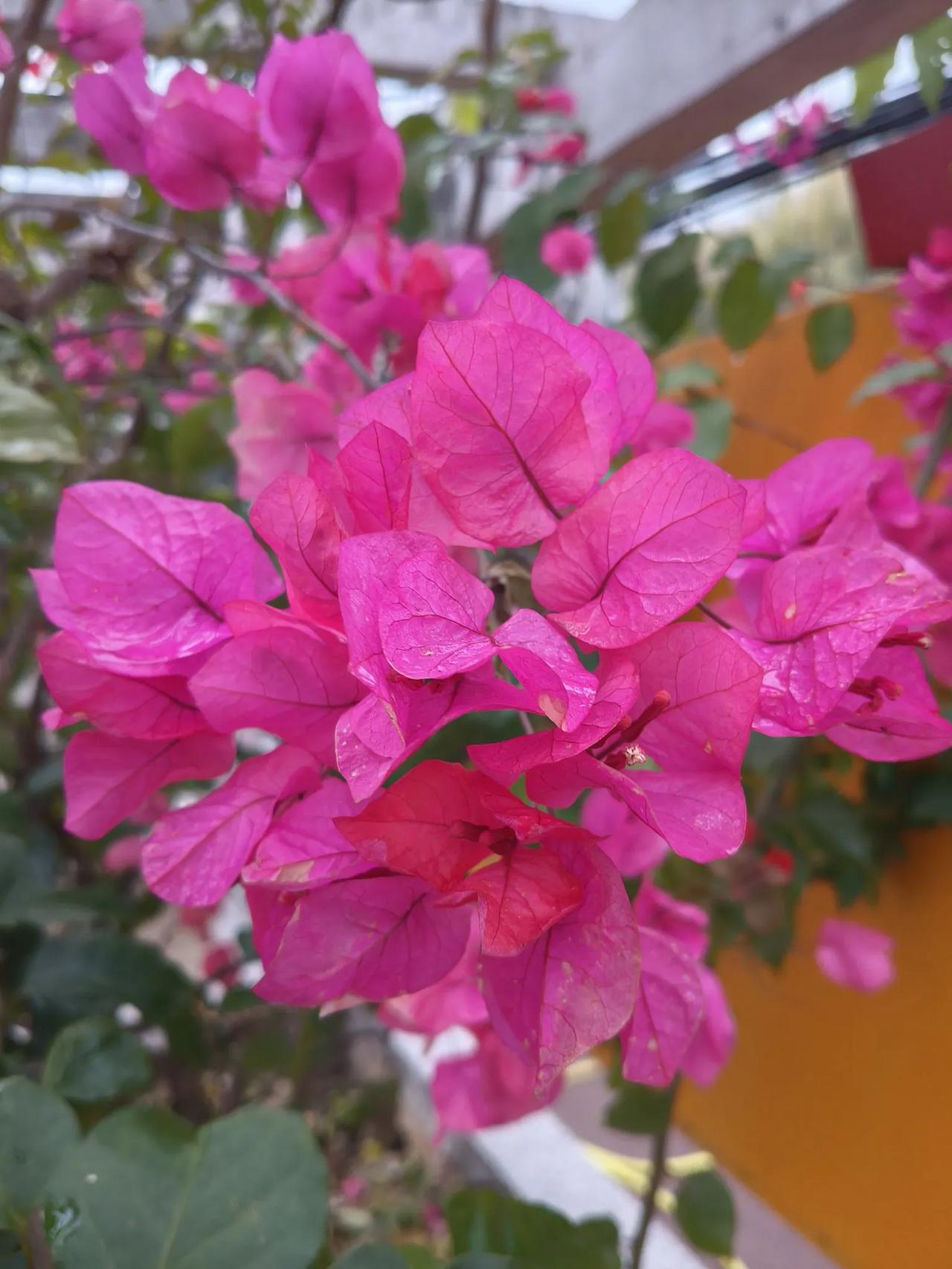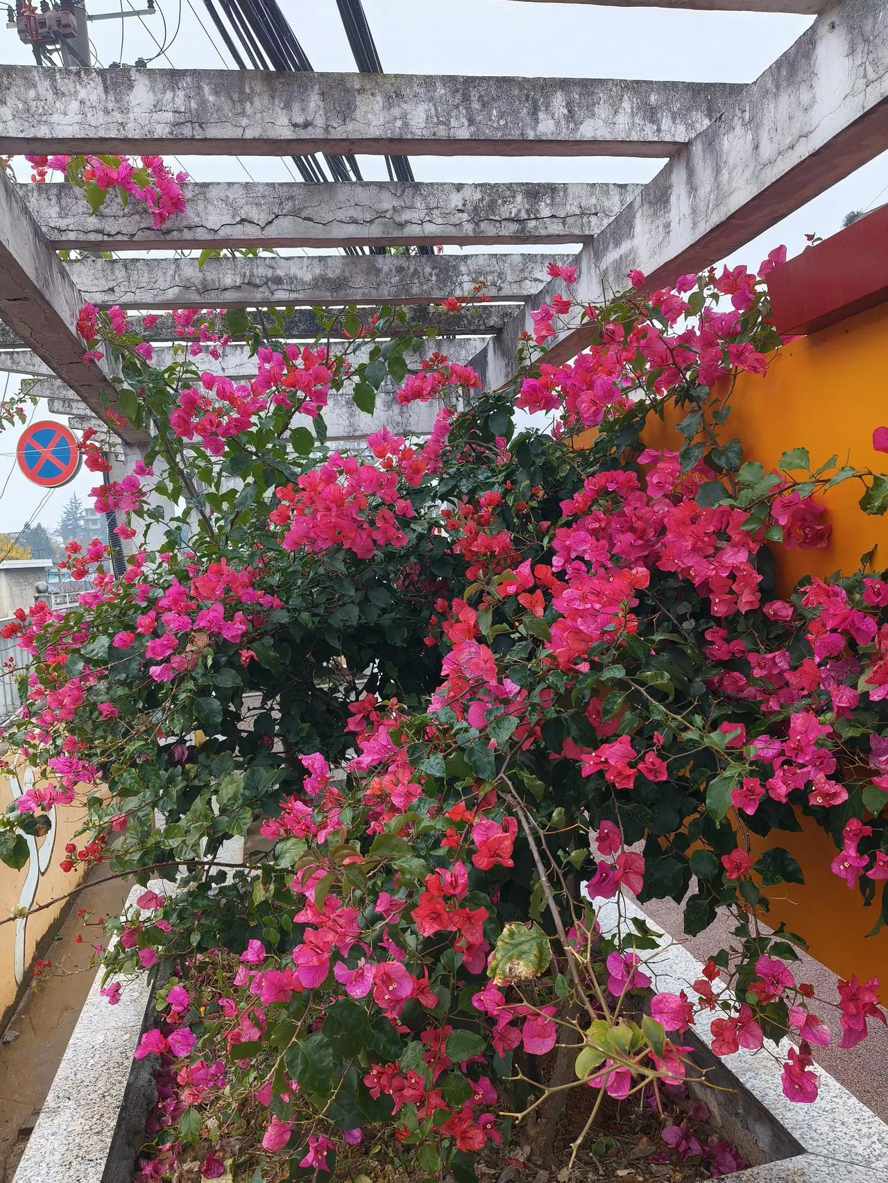我每天上班都要经过它们面前,但它们在我的眼里却成了可有可无的存在。 我记得开学前它们就这样开着。如今学生快要放假了,它们还照样站在寒风中炫彩夺目。冬日赏花随手拍 艳丽花朵随手拍 随手拍下三角梅 随手拍的花分享