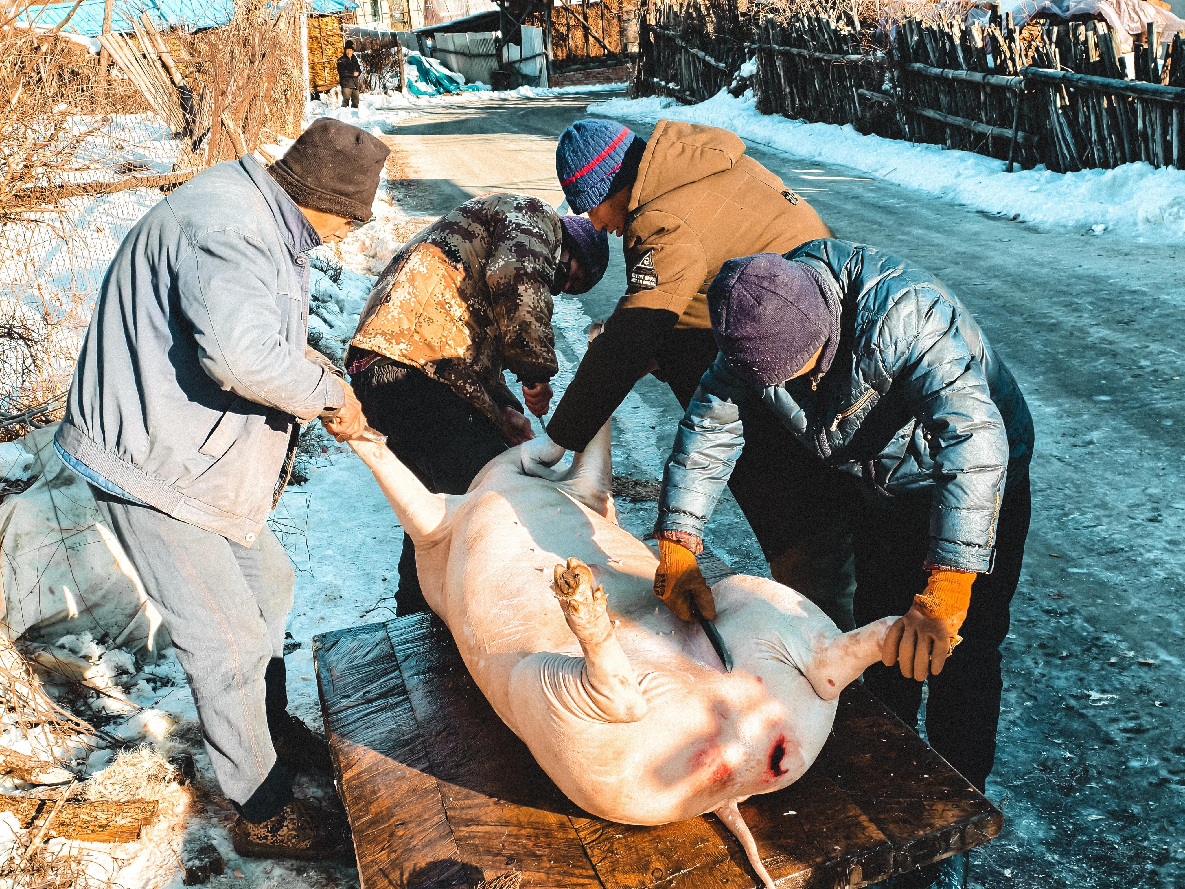 回东北农村杀猪吃肉🐖过程中受到了小小的震撼。零下十几度的天气,这里的人们有着他