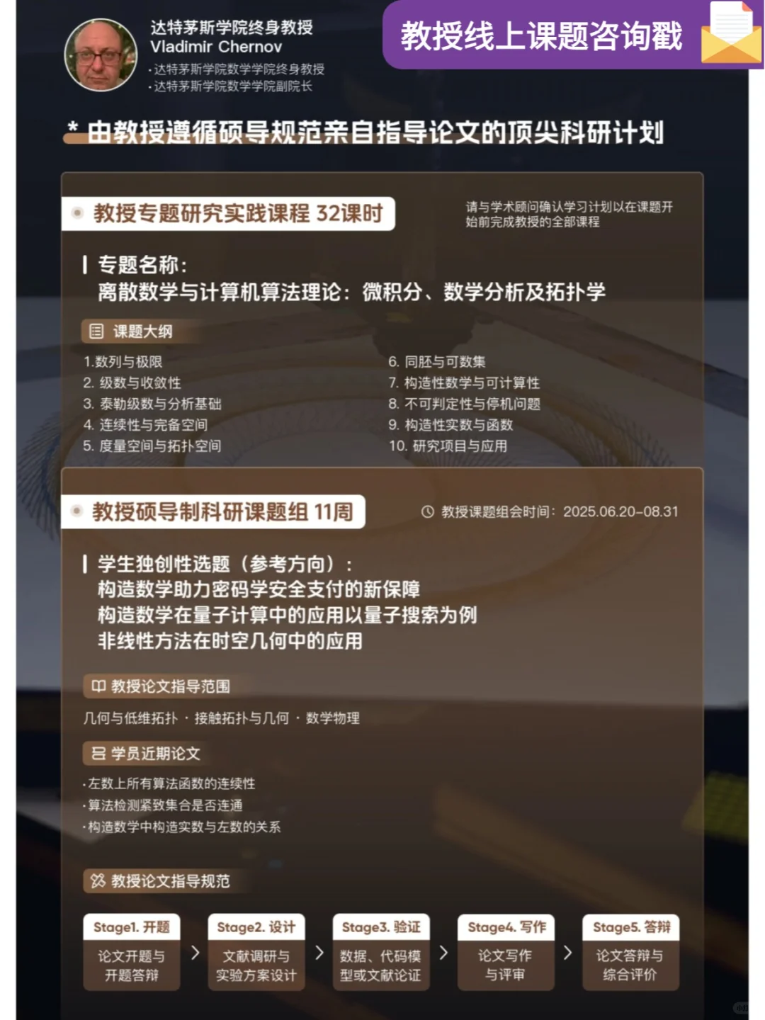 ✨教授专题课程,让我对抽象代数有了更深入的理解,也激发了我对跨领域学习研究的热情。📖在CIS的课程中,我从0开始学习如何研究文献,如何提出科学问题并开展相关研究。