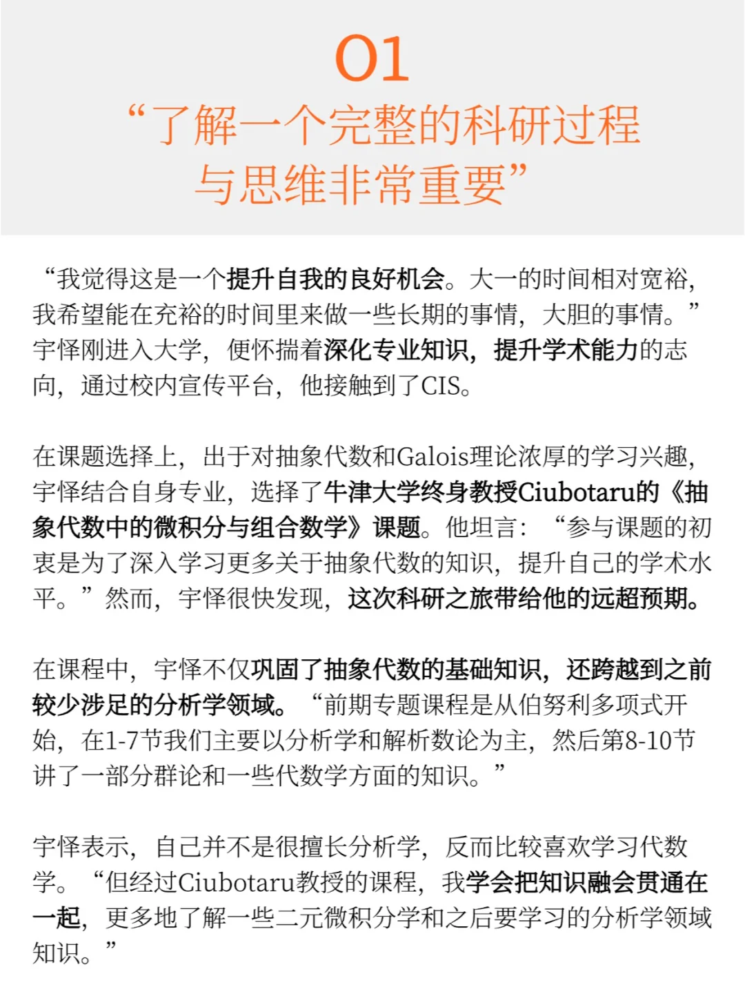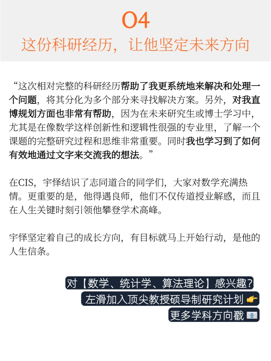✨这次相对完整的科研经历对宇泽同学直博规划方面也非常有帮助。🏫“因为在未来研究生或博士学习中,尤其是在像数学这样创新性和逻辑性很强的专业里,了解一个课题的完整研究过程和思维非常重要。“