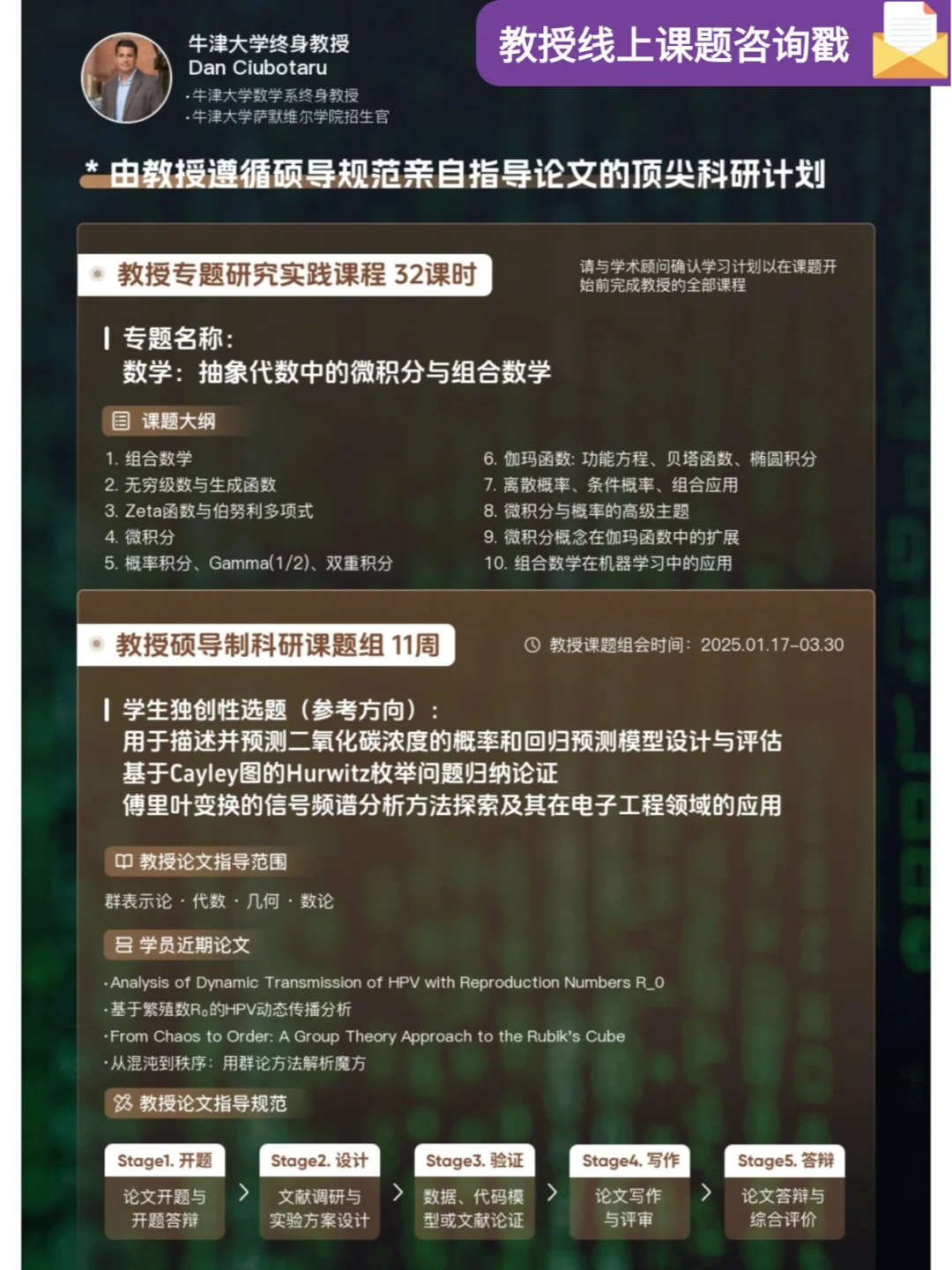 👨🏫指导教授:牛津大学数学系终身教授Dan Ciubotaru
