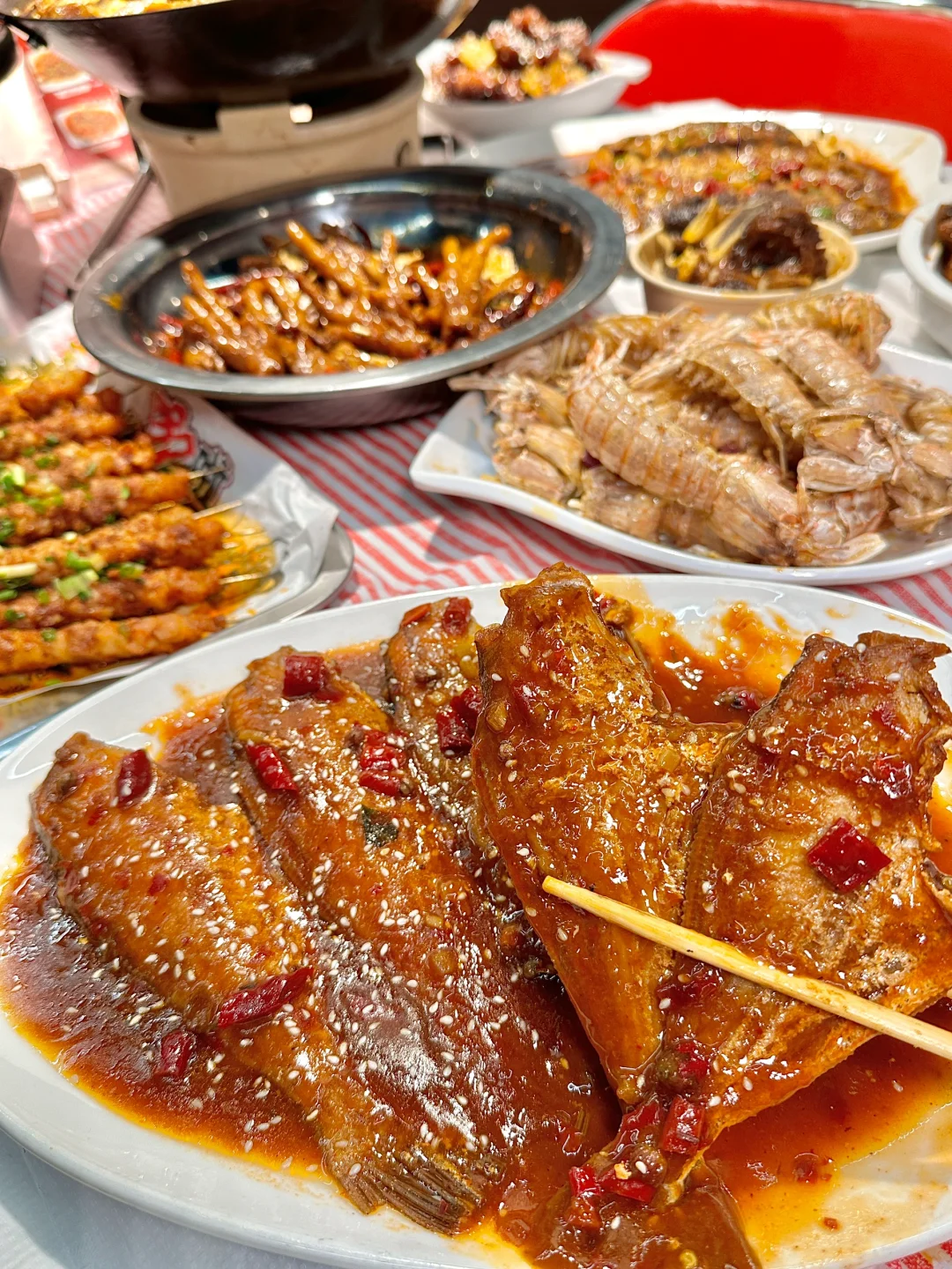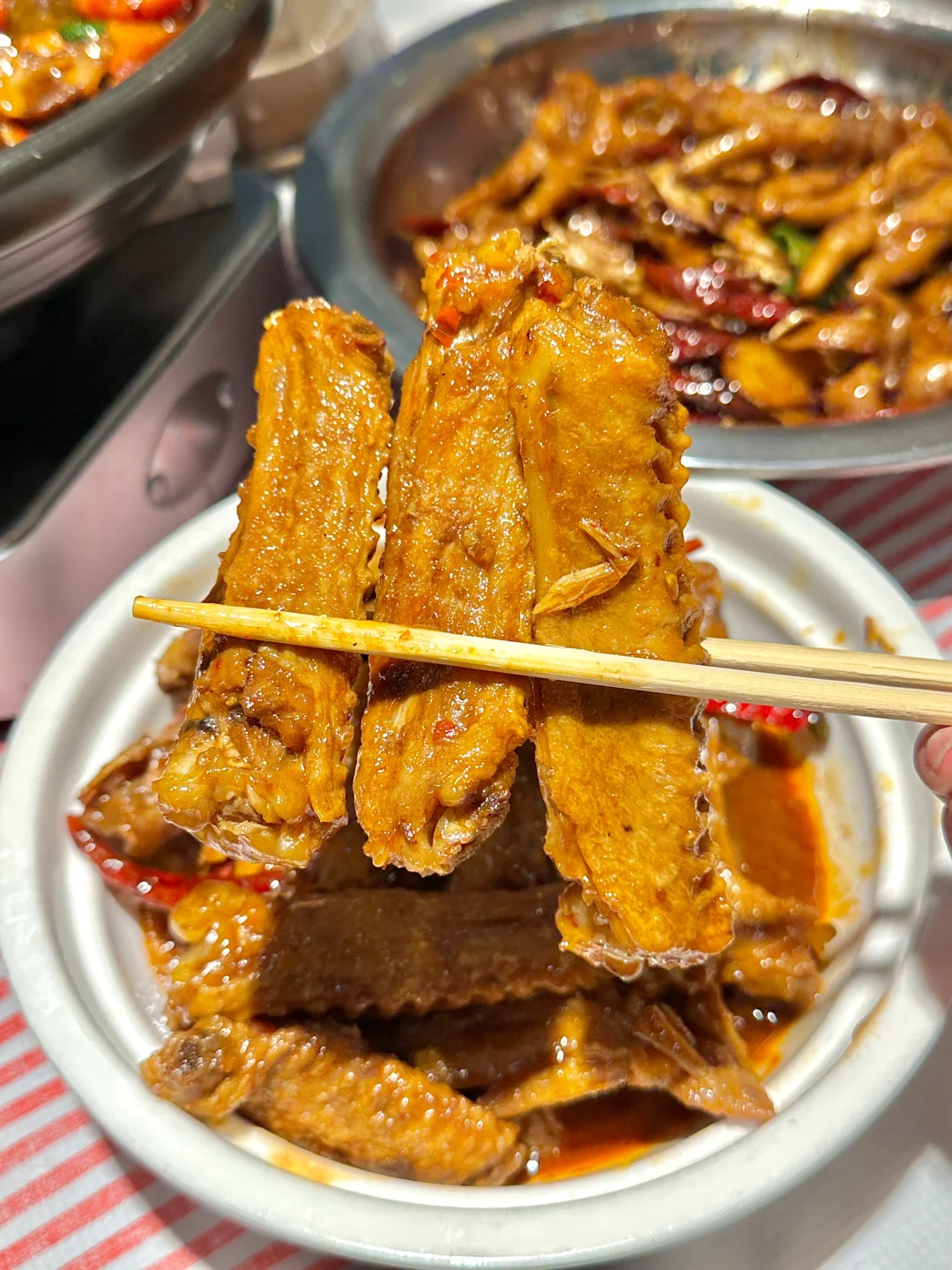 居民楼下本地人打堆堆的宵夜大排档,武汉土著才知道的小破店。。。 热乎乎的吊锅吃上了,分量十足,味道是那个事,冬天就好这一口! 建港辣肉子!都跟我吃!!真的jujujuju香!好吃😭 臭鳜鱼,味道直冲天灵盖,越吃越上头! 再来份红油牛肉包子,chao满足!!