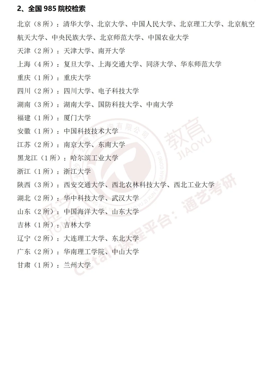 北京地区(7所):清华大学、北京大学、中国人民大学、北京航空航天大学、北京理工大学、中国农业大学、北京师范大学