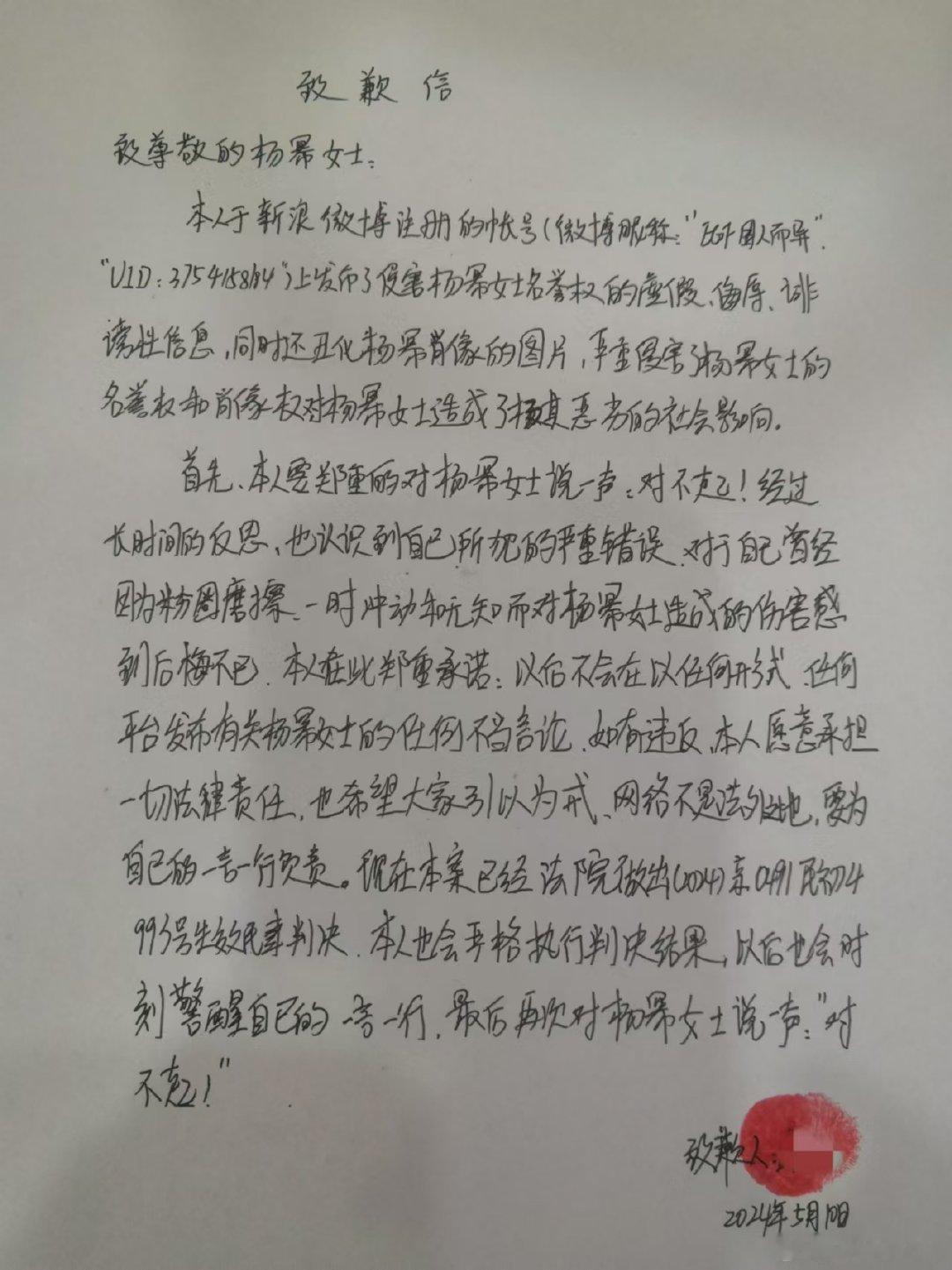 杨幂黑粉录视频致歉黑粉录视频向杨幂致歉黑粉手写道歉信并录视频向杨幂致歉!