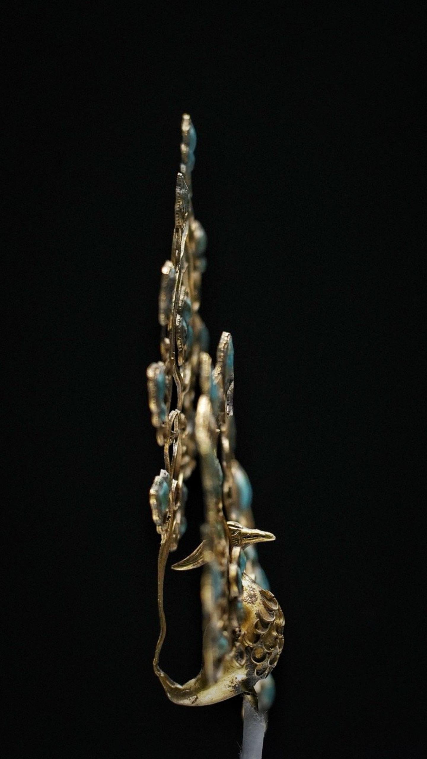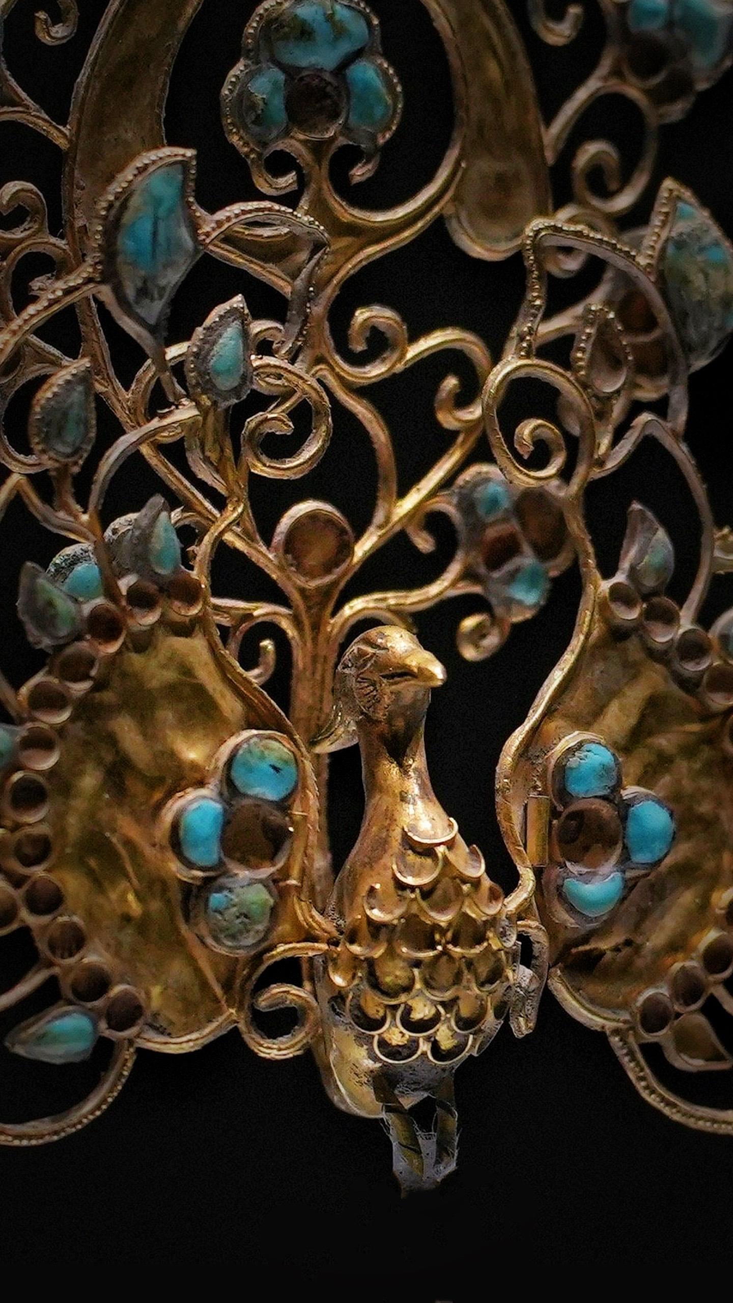 唐代· 嵌松石立凤金头饰。凤飞翱翔兮,四海求凰