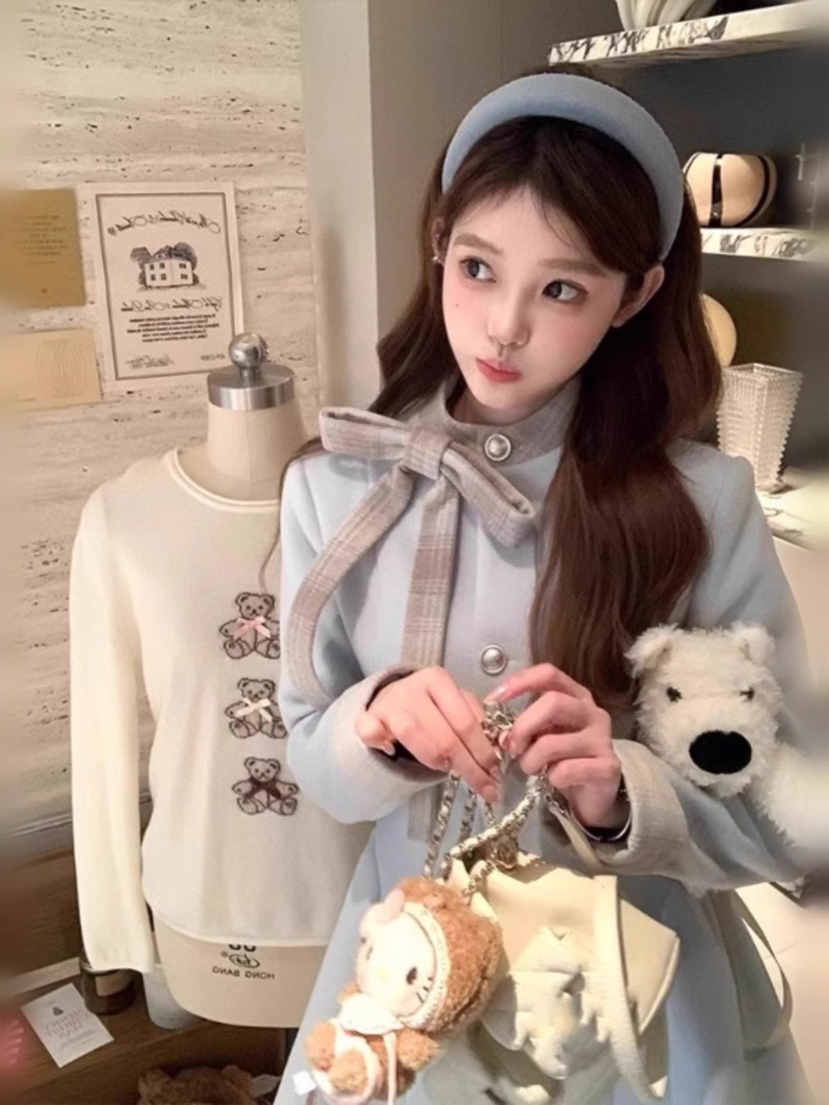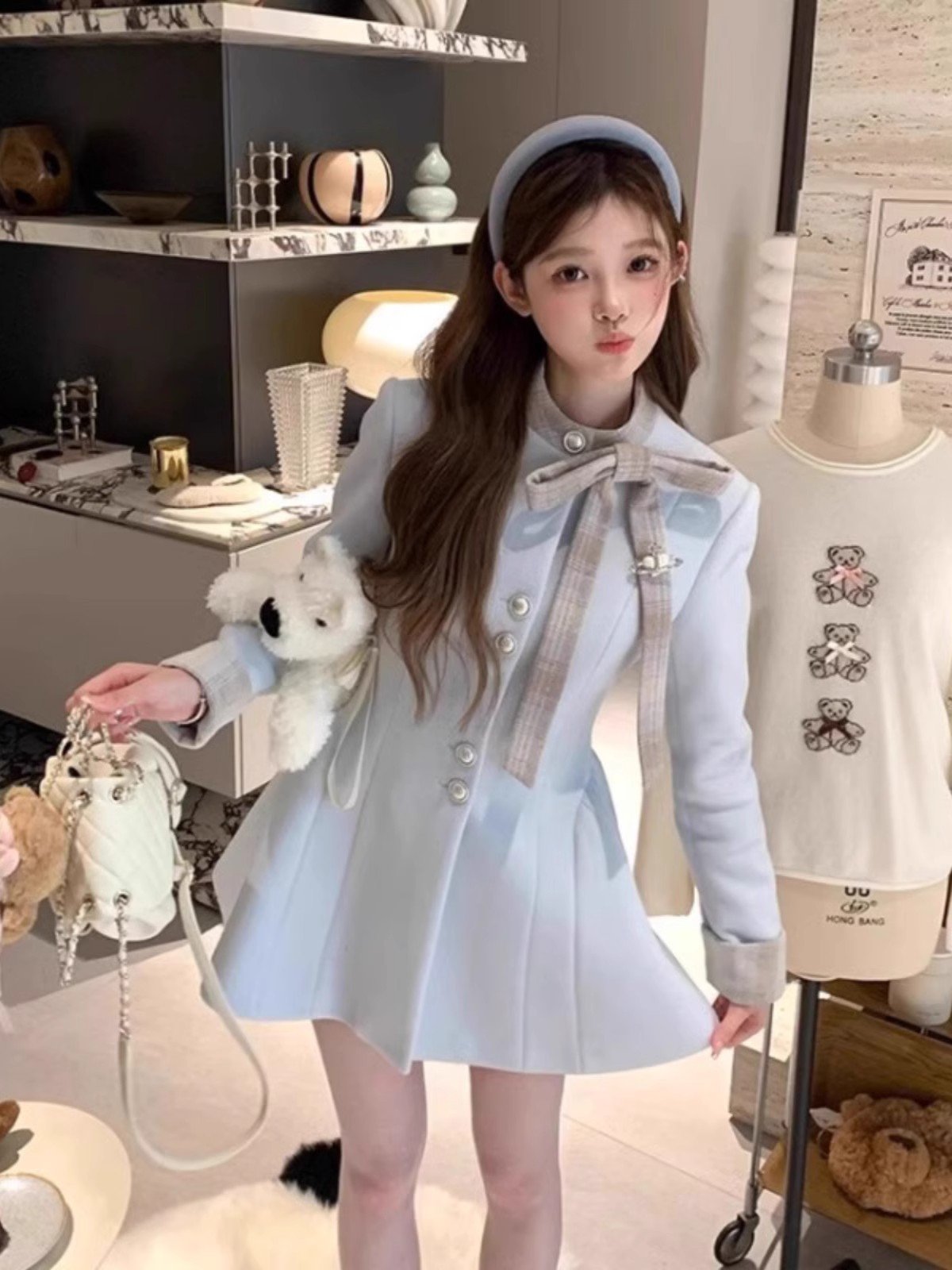 浅色加绒加厚连衣裙女冬季内搭配大衣打底