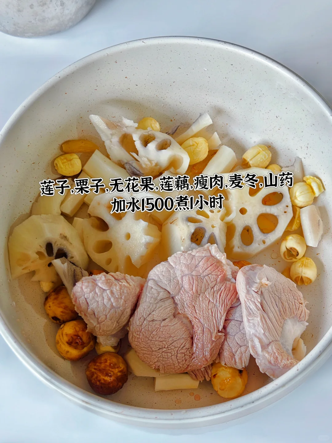[向右R]材料:山药,莲子,栗子,无花果,瘦肉,莲藕