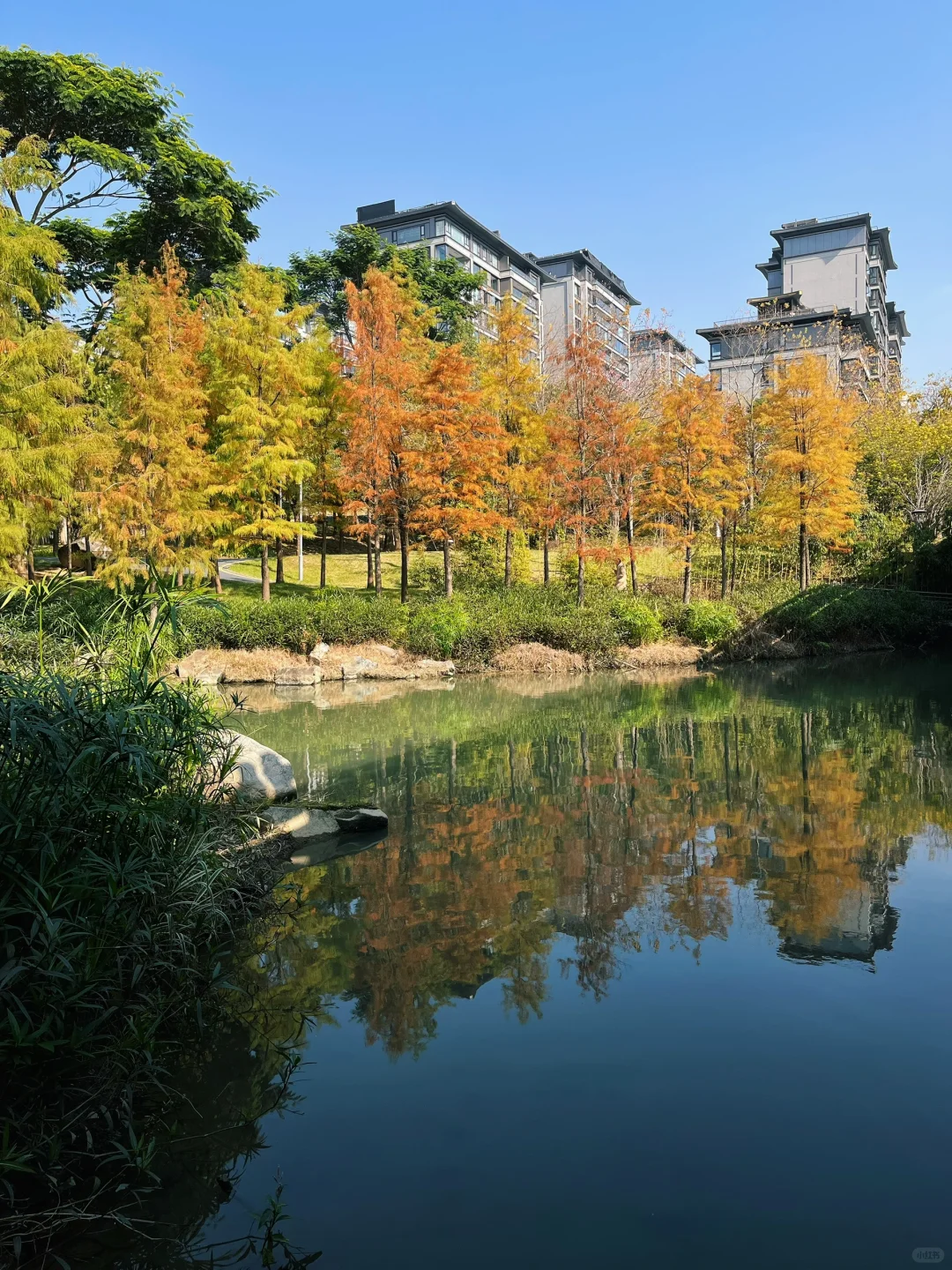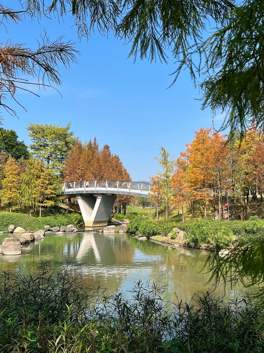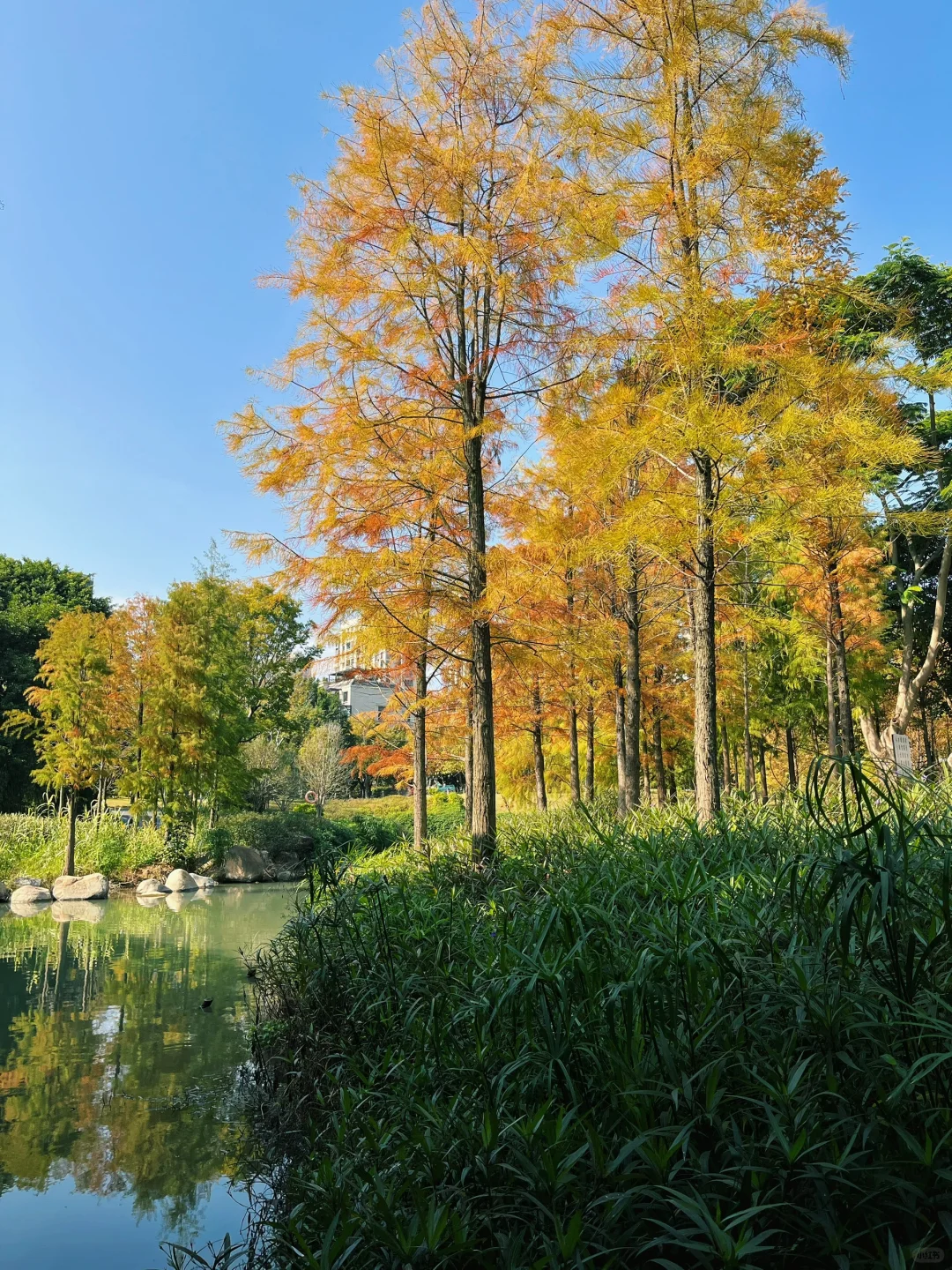 冬季的鹤林公园,随着气温降低,杉林在暖阳、蓝天、碧水配合下,逐渐变红。 一年当中,色彩最浓烈的时刻即将到来。