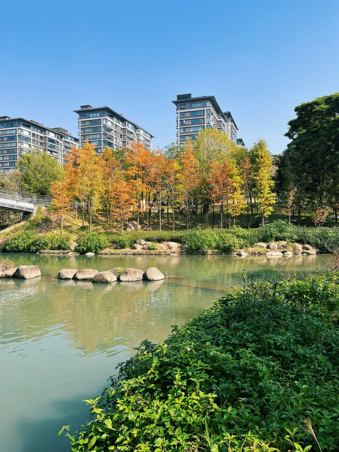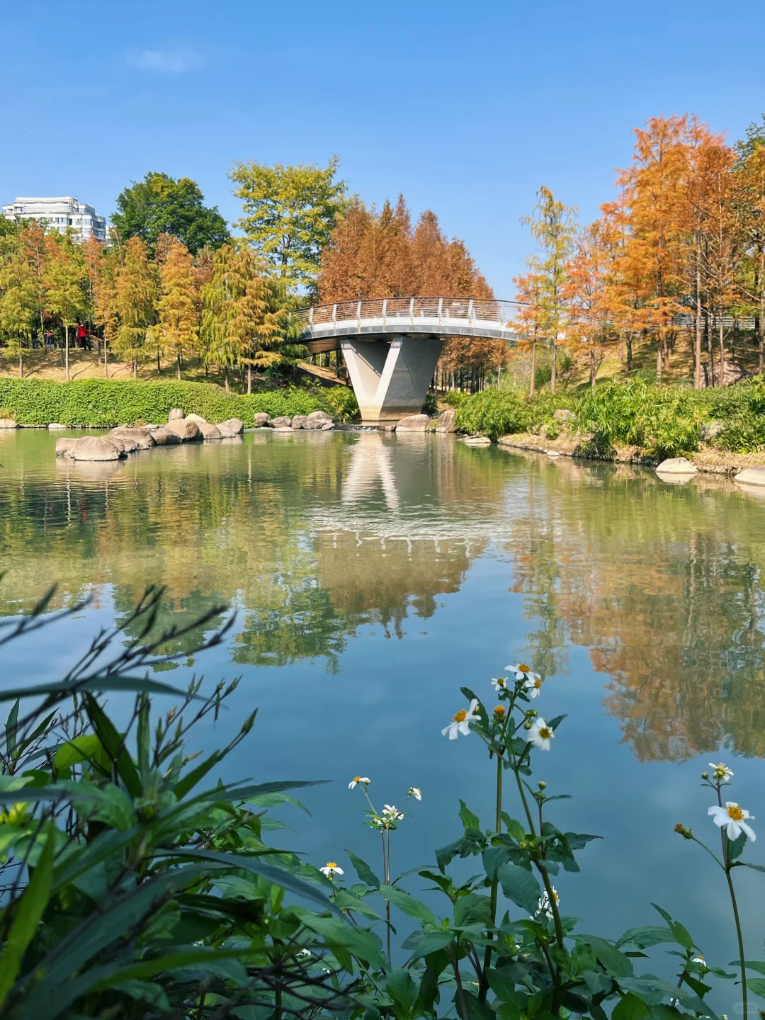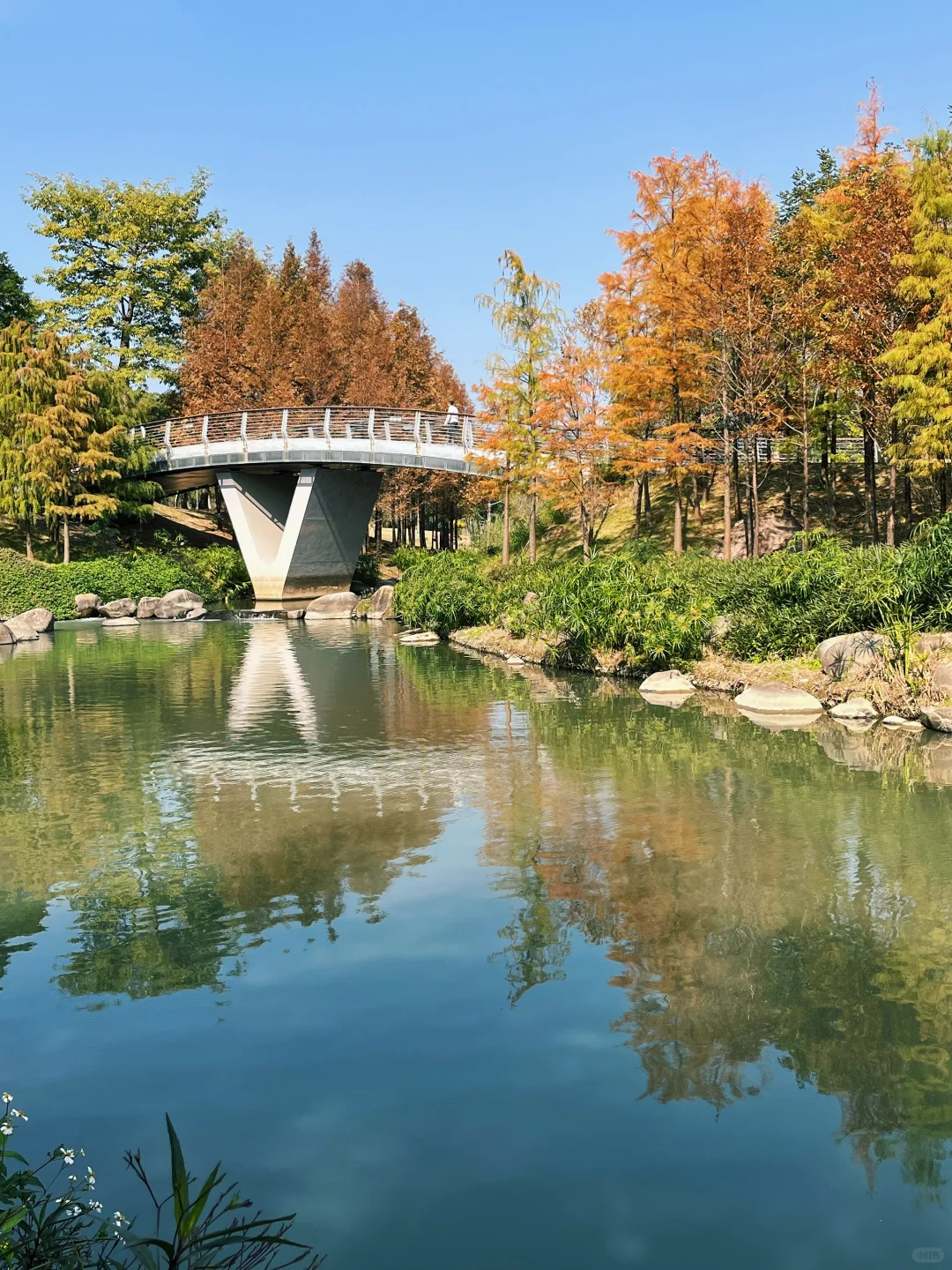 冬季的鹤林公园,随着气温降低,杉林在暖阳、蓝天、碧水配合下,逐渐变红。 一年当中,色彩最浓烈的时刻即将到来。