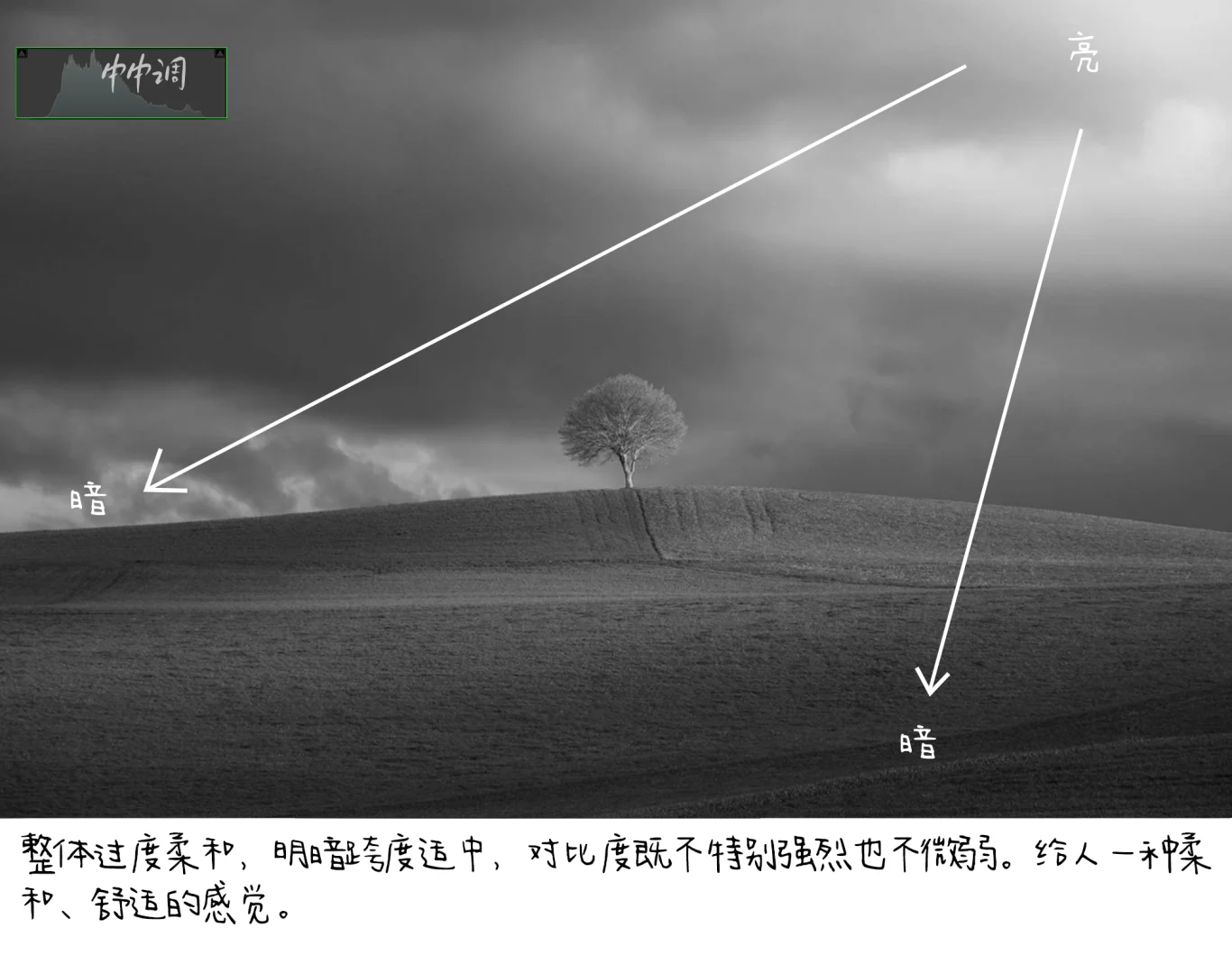 [三R].影调:整体过度柔和,明暗跨度适中,对比度既不特别强烈也不微弱。给人一种柔和、舒适的感觉。