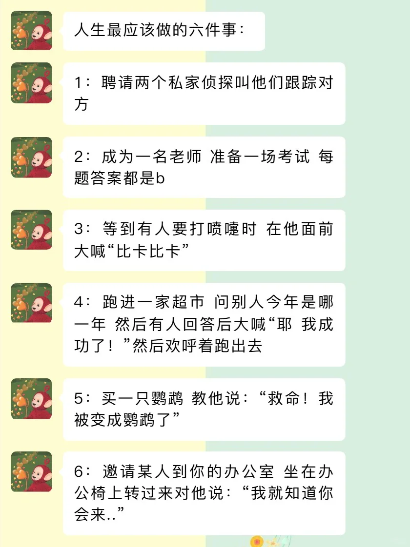 Ta一起来看 1⃣1800爸爸要挣多久 2⃣人生最应该做的六剑事 3⃣我的戏精女友1 4⃣wifi密码 5⃣你身边有这样的哥们吗 6⃣千万别动马上接你 7⃣我对你掏心窝子,你却对我掏心眼子 8⃣五句话暖她一整天 9⃣我还没发呢我 1⃣0⃣顶级对抗 1⃣1⃣双向奔赴 1⃣2⃣家人们现在怎么办 在线等 急! 1⃣3⃣反复横跳 1⃣4⃣赌徒 1⃣5⃣麻醉师一辈子的阴影 1⃣6⃣狠狠的心动了 1⃣7⃣深情 1⃣8⃣试试你的输入法